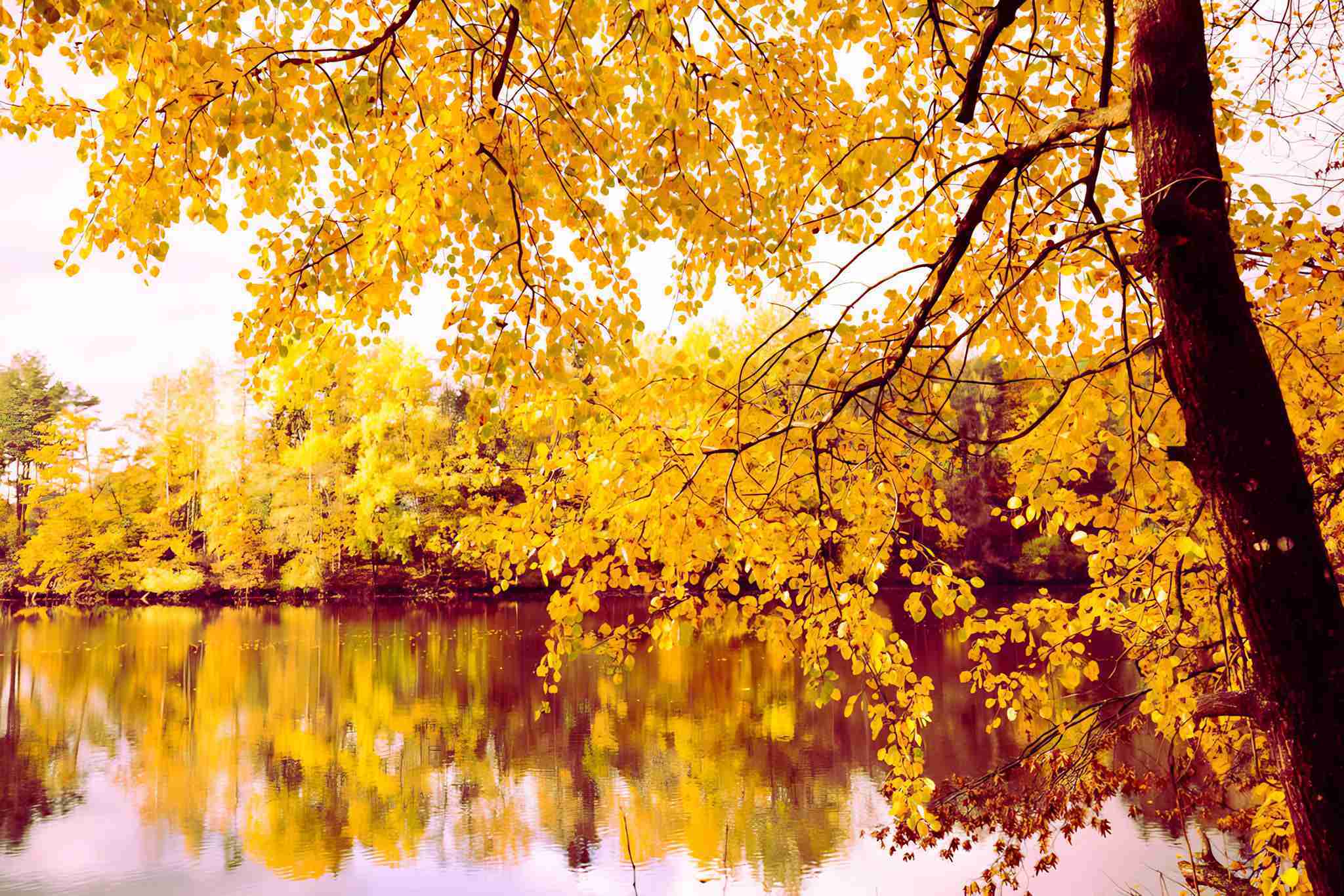金色的秋天,秋天的风景,上普法尔茨的水库,五颜六色的树叶