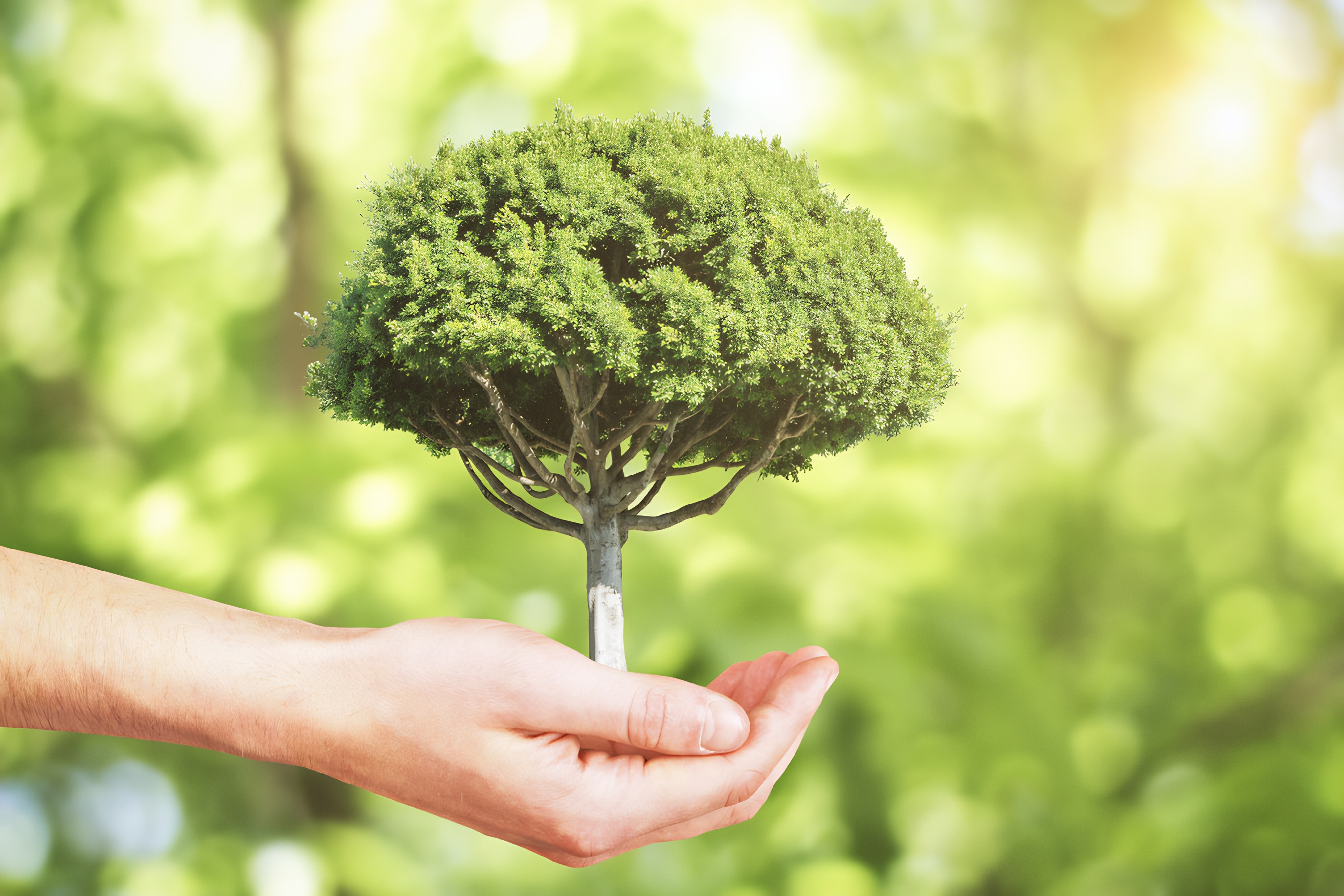 Growth concept with hand holding a tree
