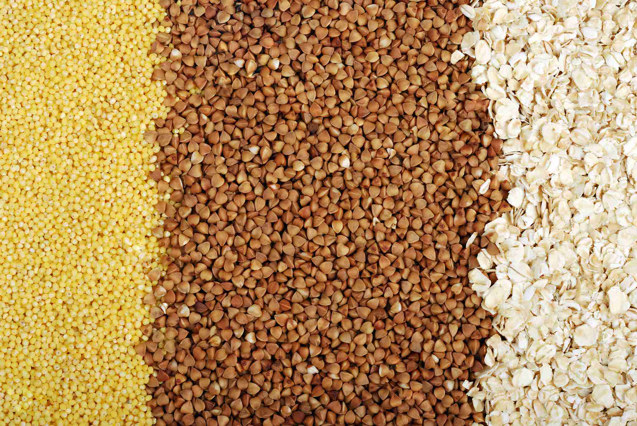 荞麦、小米和燕麦碎粒