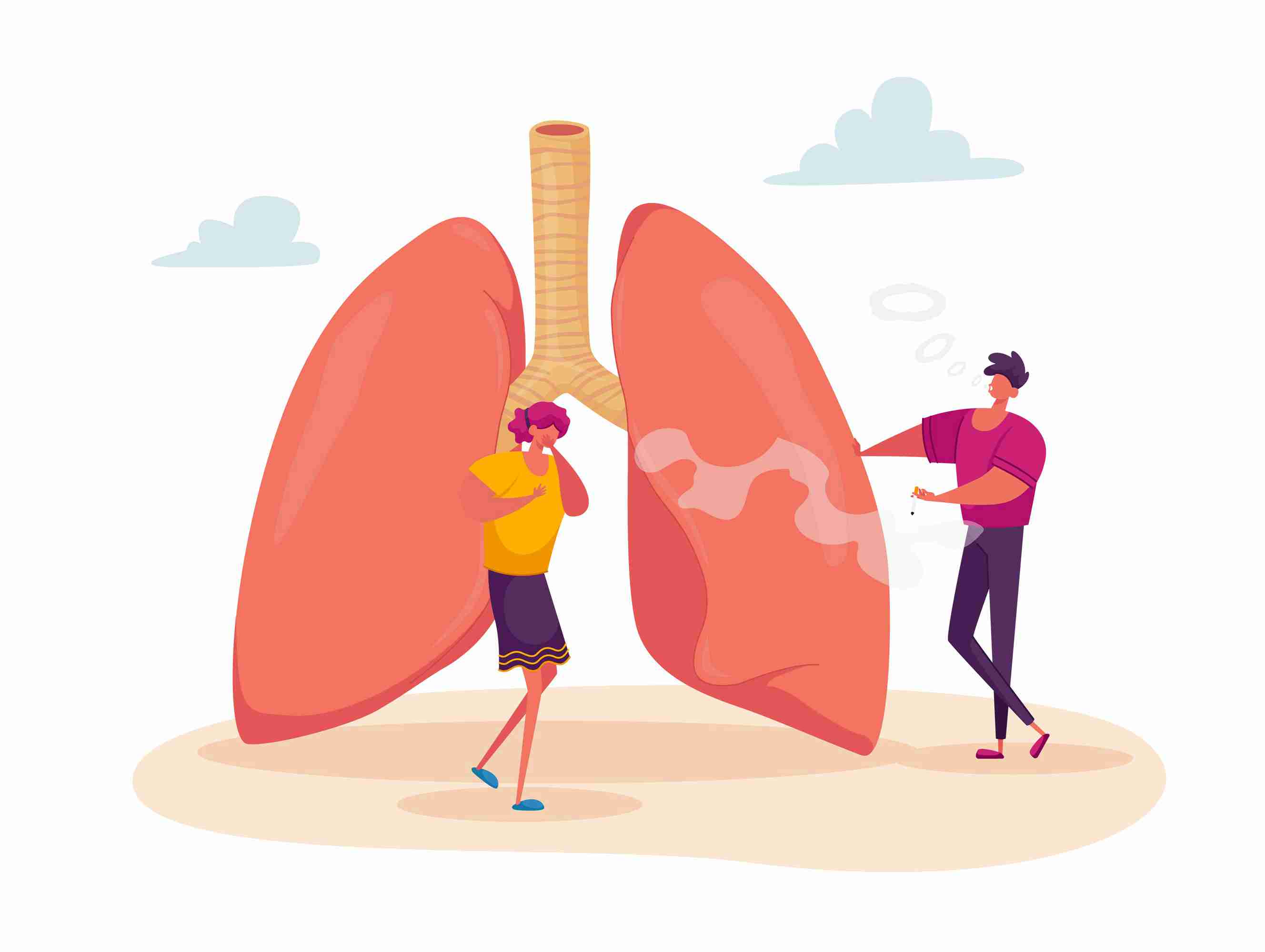 女性角色在大肺附近咳嗽与吸烟男子、肺哮喘病、呼吸系统保健