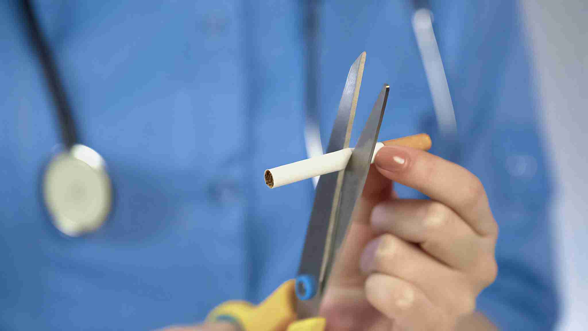 医生用剪刀剪香烟,反烟草运动,坏习惯