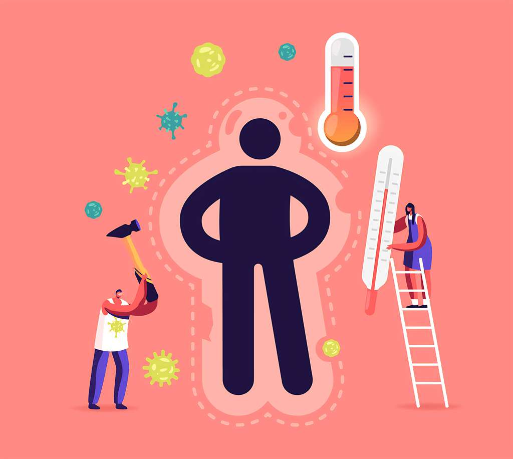 People Characters Boost Immune System, Protect from Germs, Virus Cells and Bacteria Attack Weak Immunity Concept