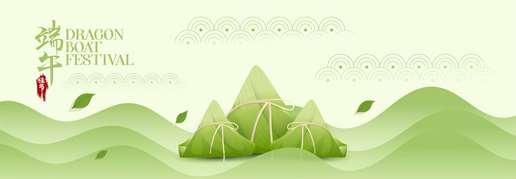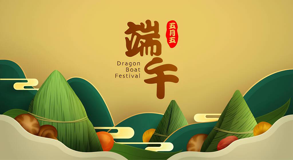 Dragon Boat Festival poster or greeting card template, Rice dumpling graphic symbols, Chinese characters: Dragon Boat Festival