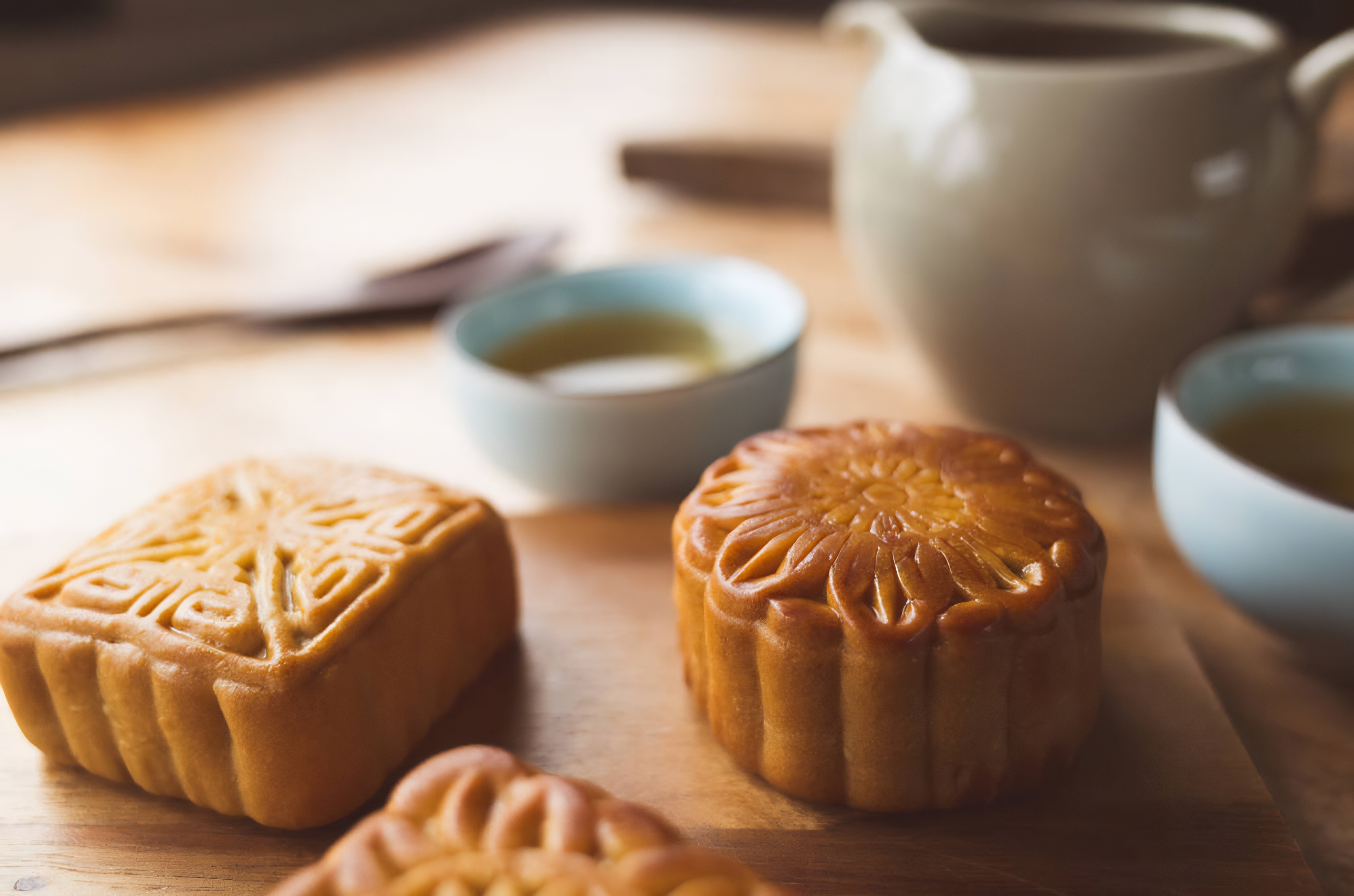 Chinese mid autumn festival food of mooncake with tea
