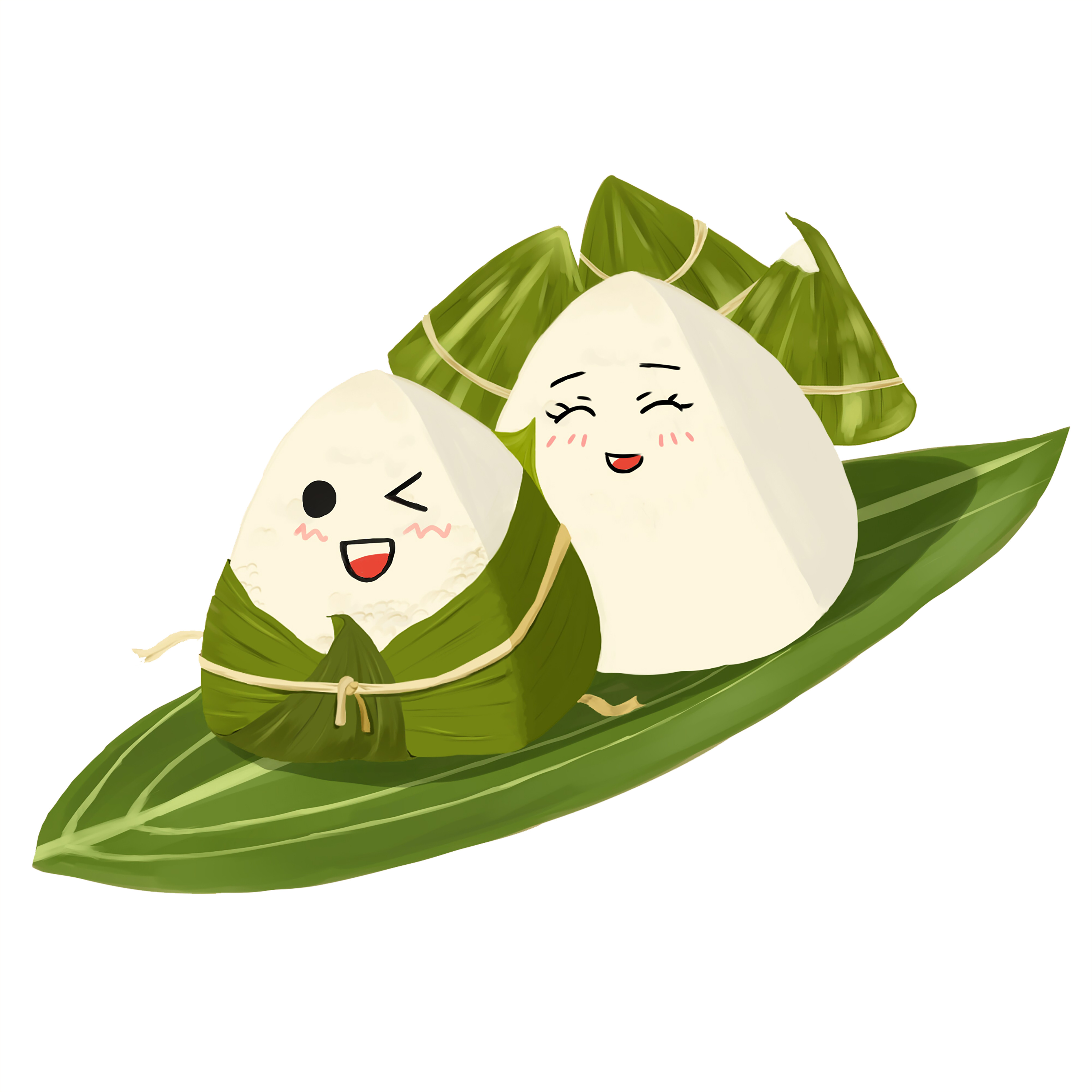 端午节两只卡通粽子坐在粽叶上卡通素材