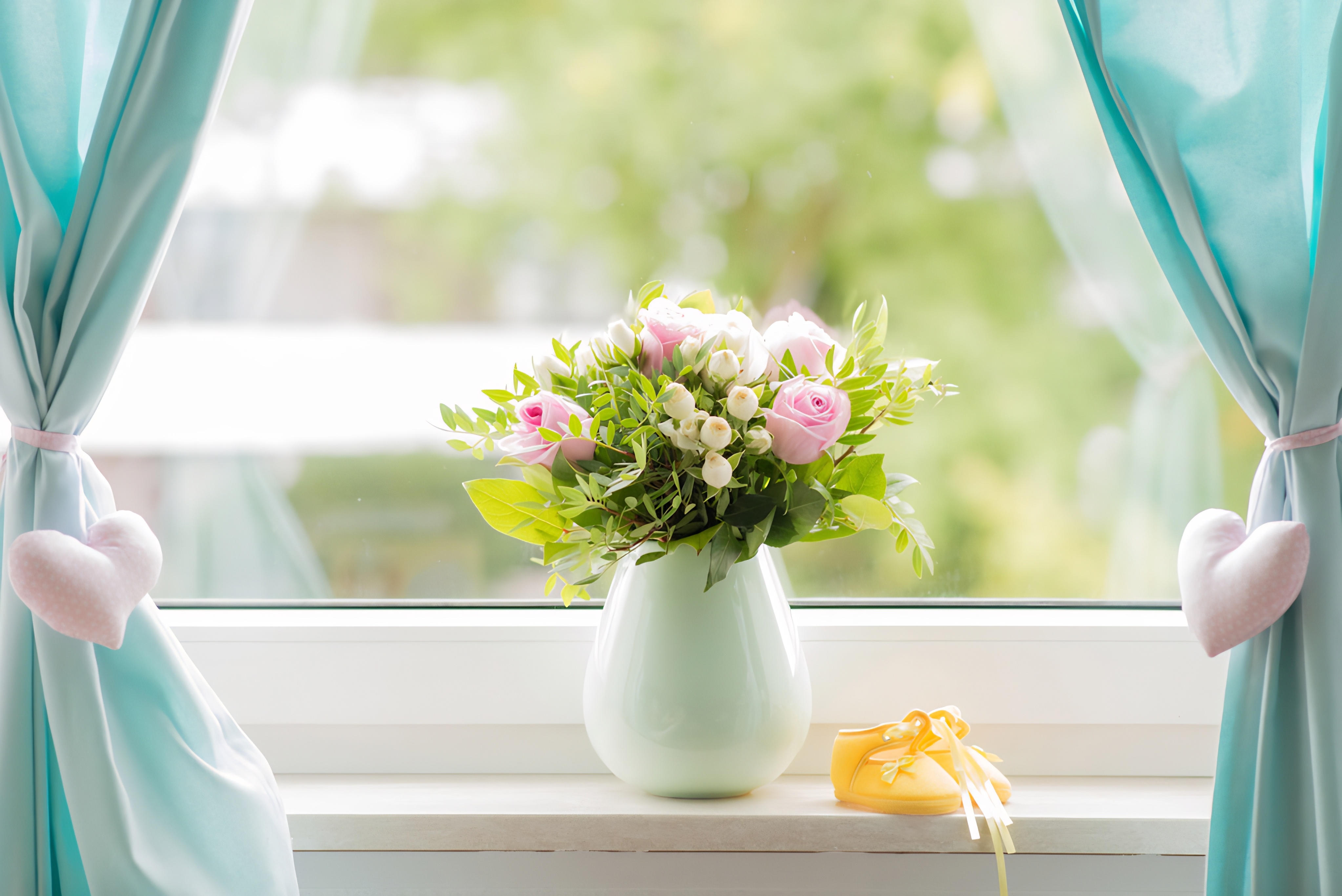Flowers and card with words HAPPY MOTHER'S DAY on wooden background
