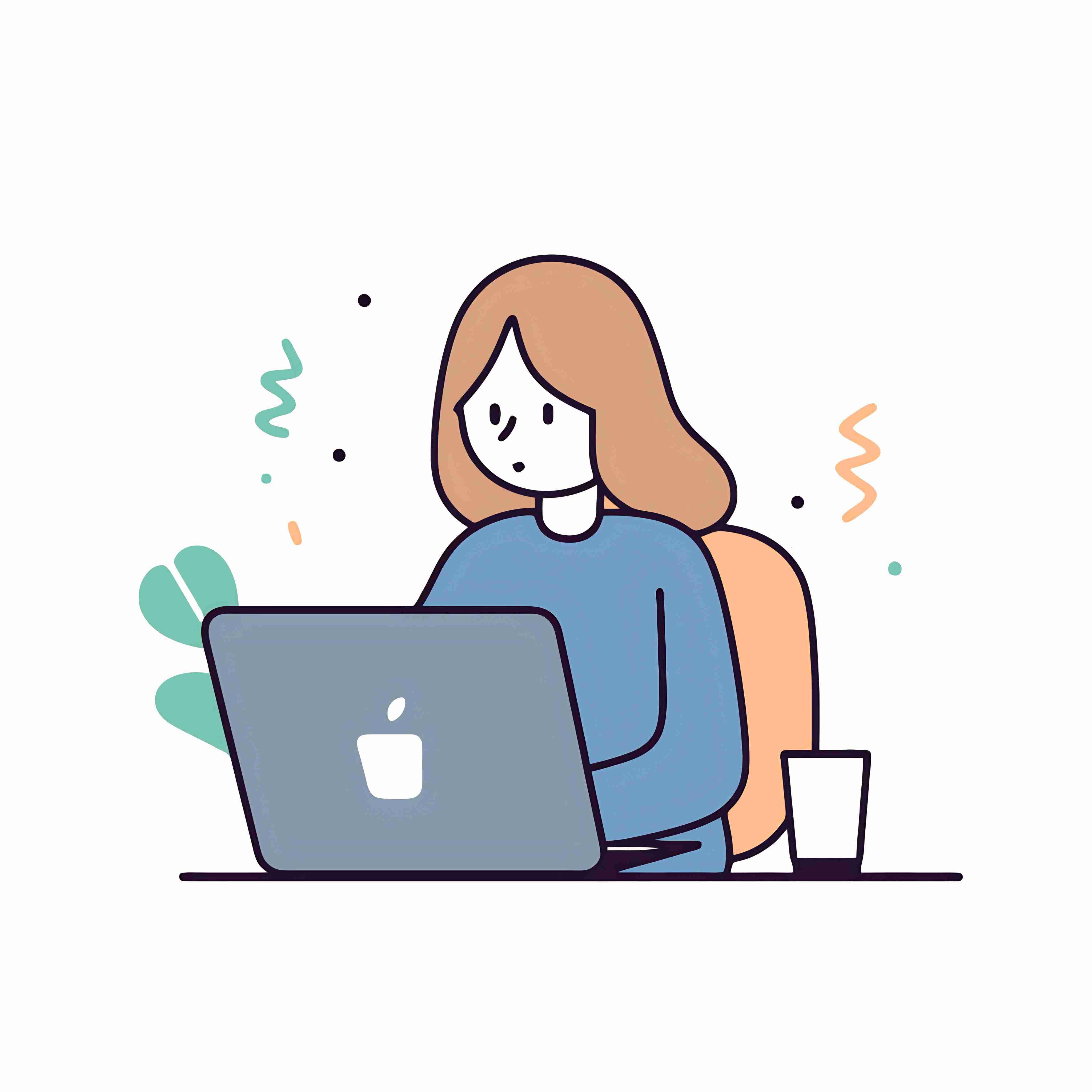 Freelance woman working on laptop. Flat line vector illustration. flat vector cartoon style