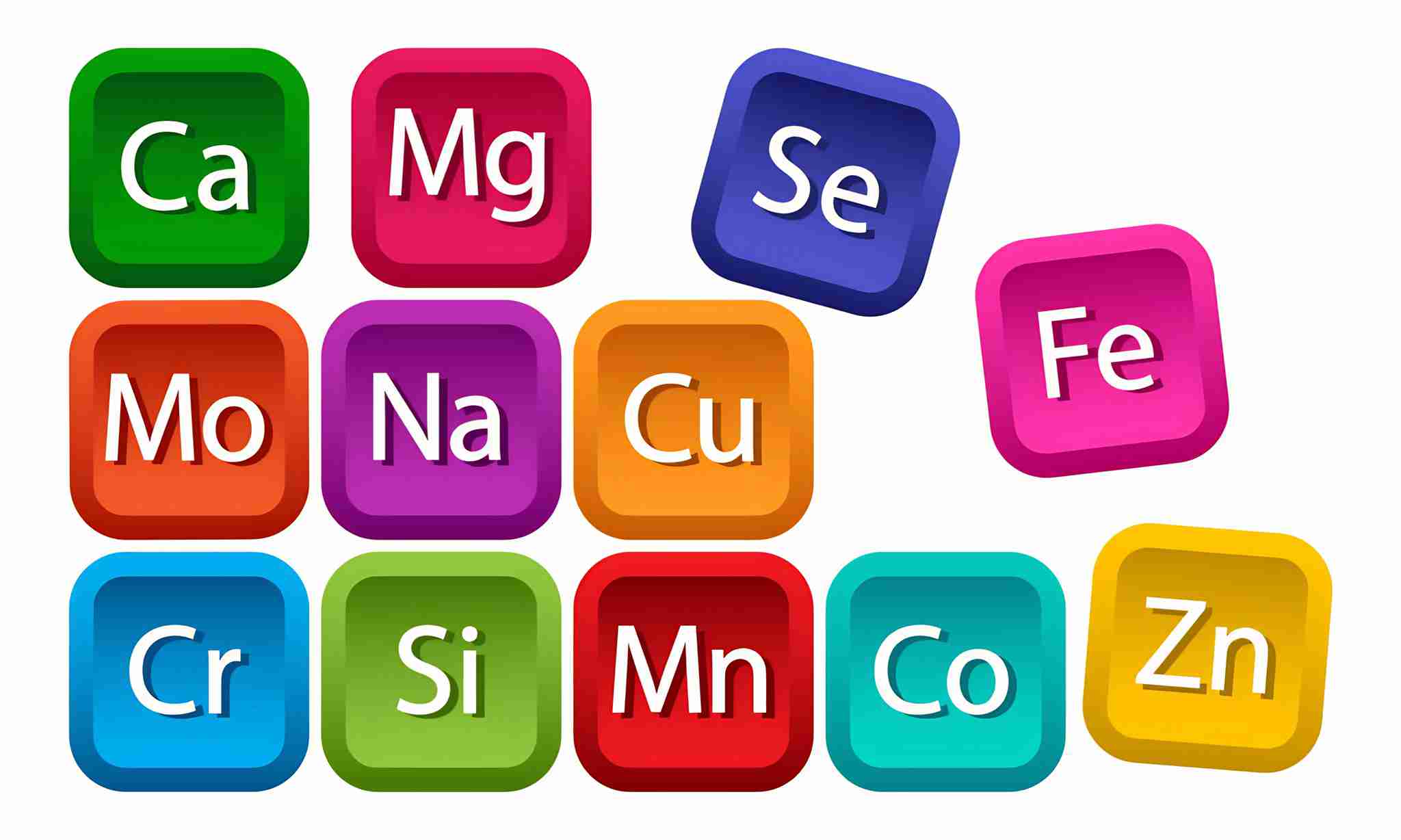 Mineral complex for health. Calcium, magnesium, zinc, iron, manganese, cobalt, copper, potassium, mo