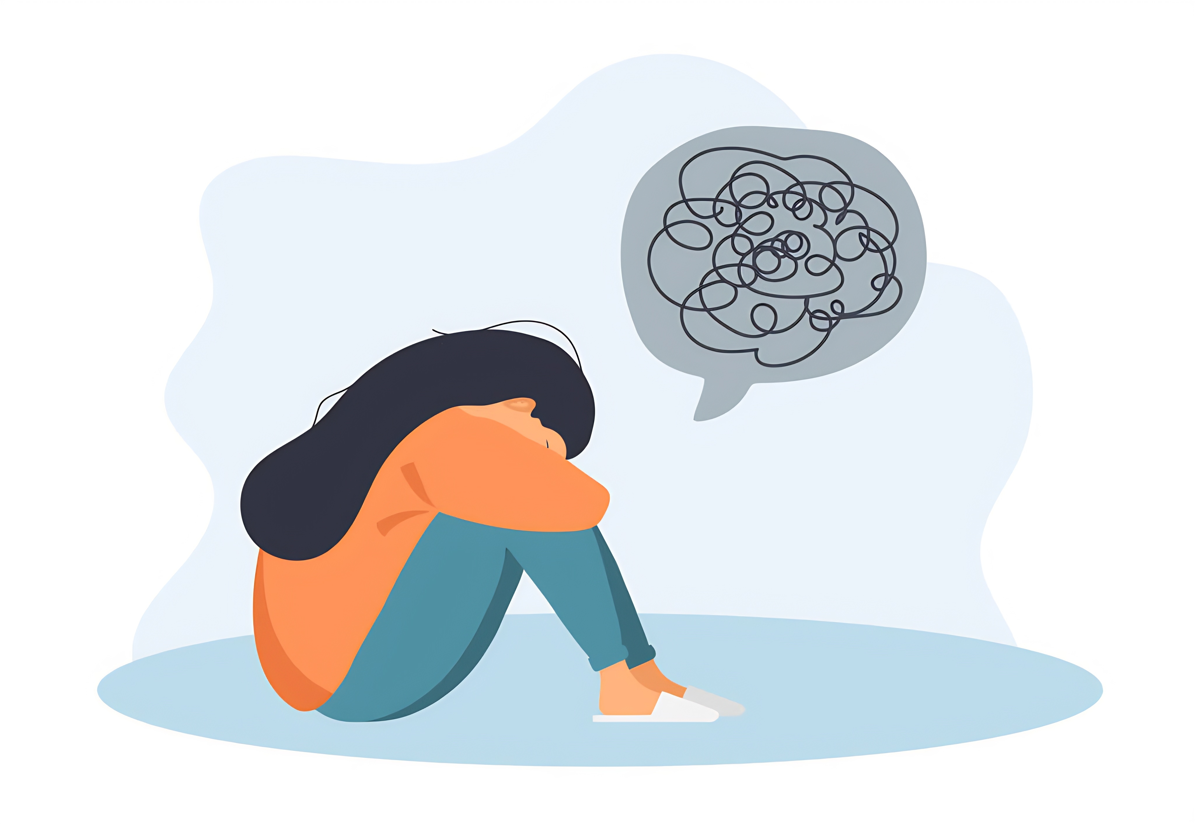 Young woman in a state of depression, confused situation, support is an opportunity and a chance. Ve