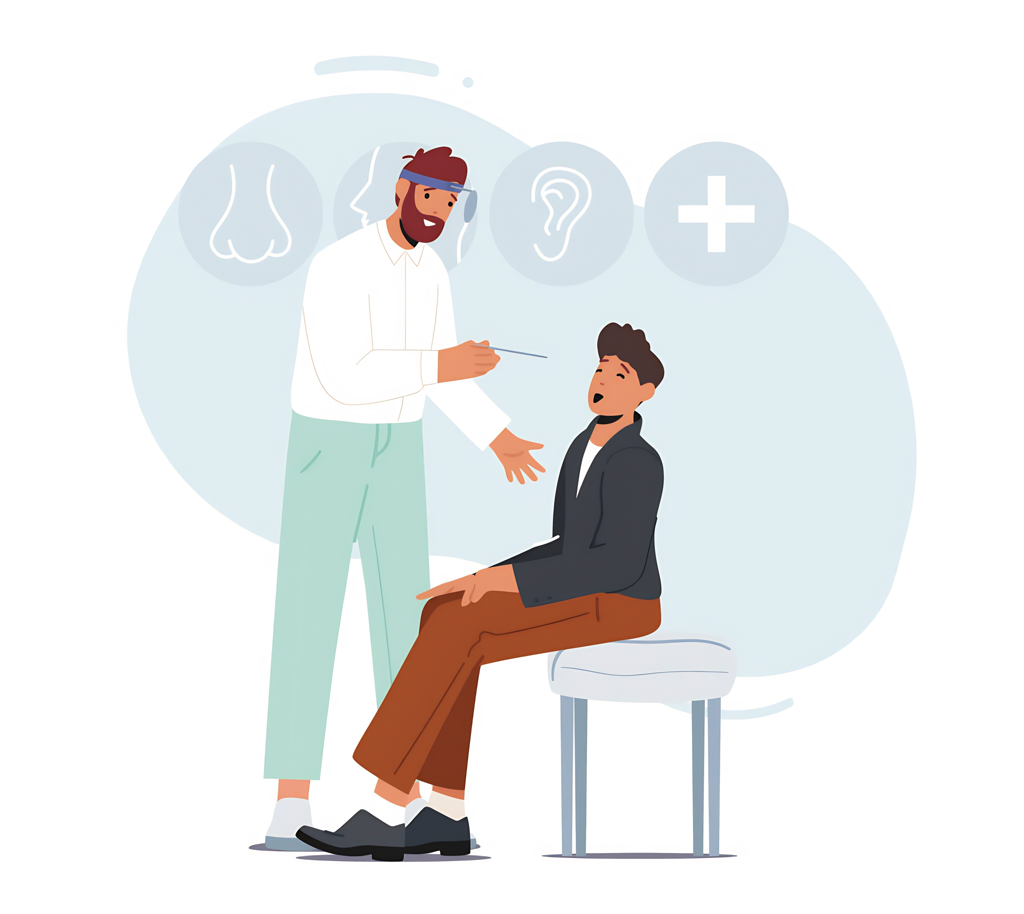 Otolaryngologist Looking Child Throat. Doctor and Kid Characters on Medical Examination. Ent Holding