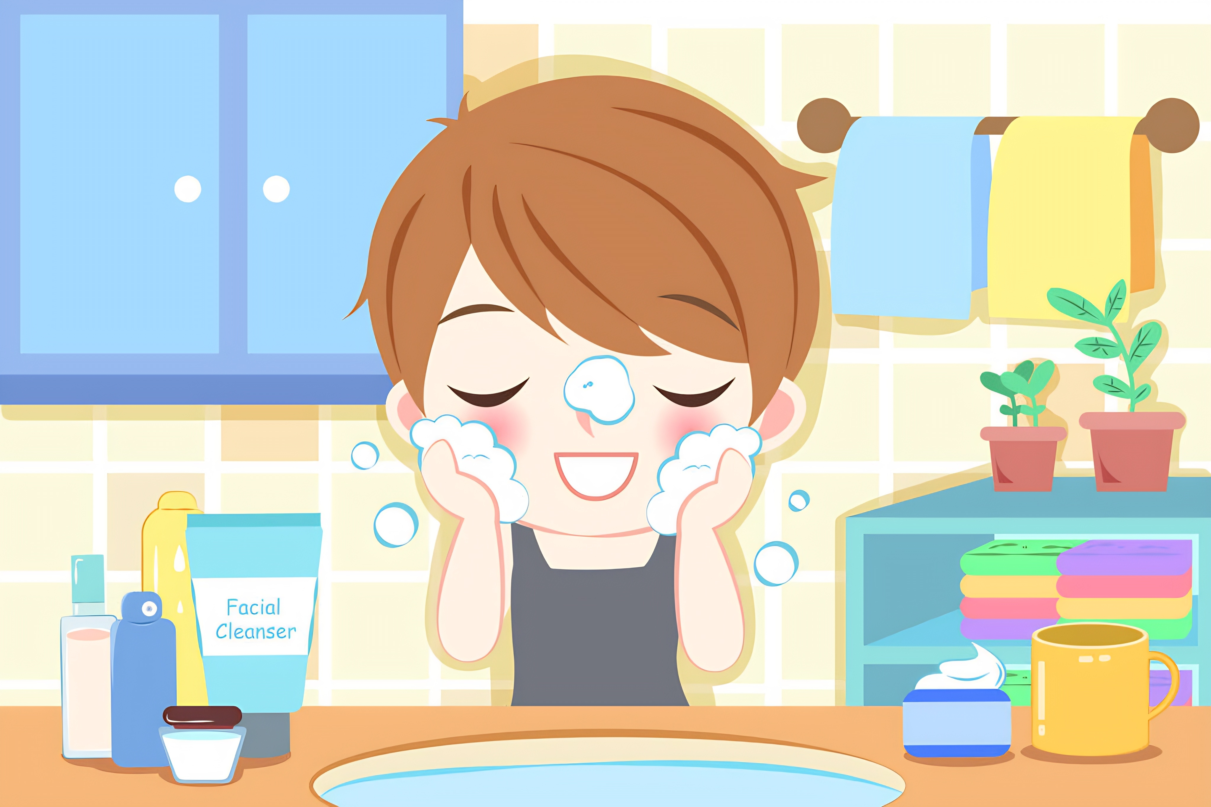 cartoon skin care man wash his face