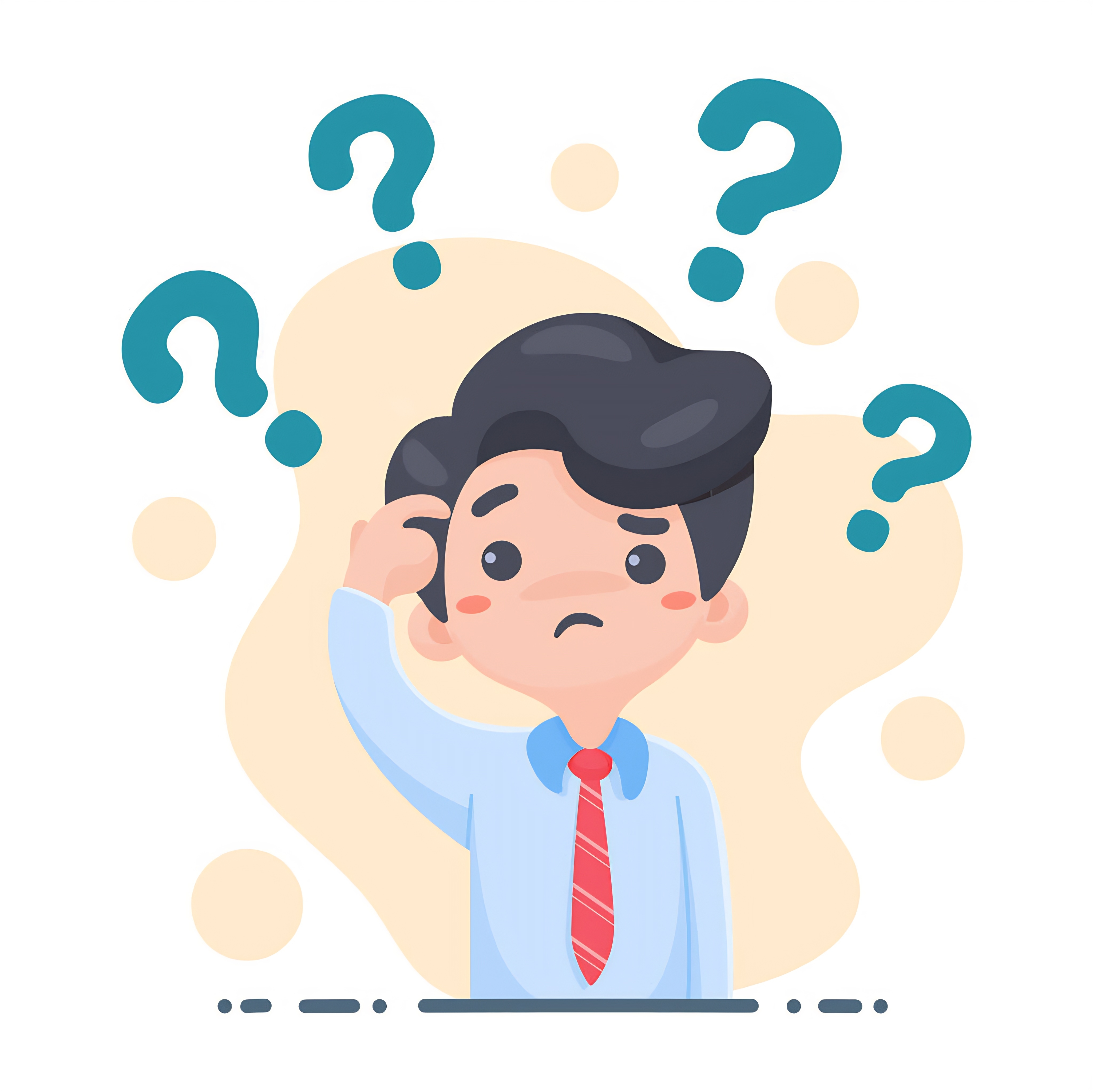 Male staff in a suit Showing signs of doubt by scratching his head And there are many question marks on the top.