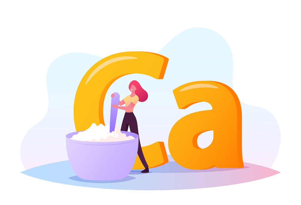 Tiny Woman Character Eating Curd from Huge Bowl. Dairy Production as Source of Calcium Mineral Supplement, Lactose Meal