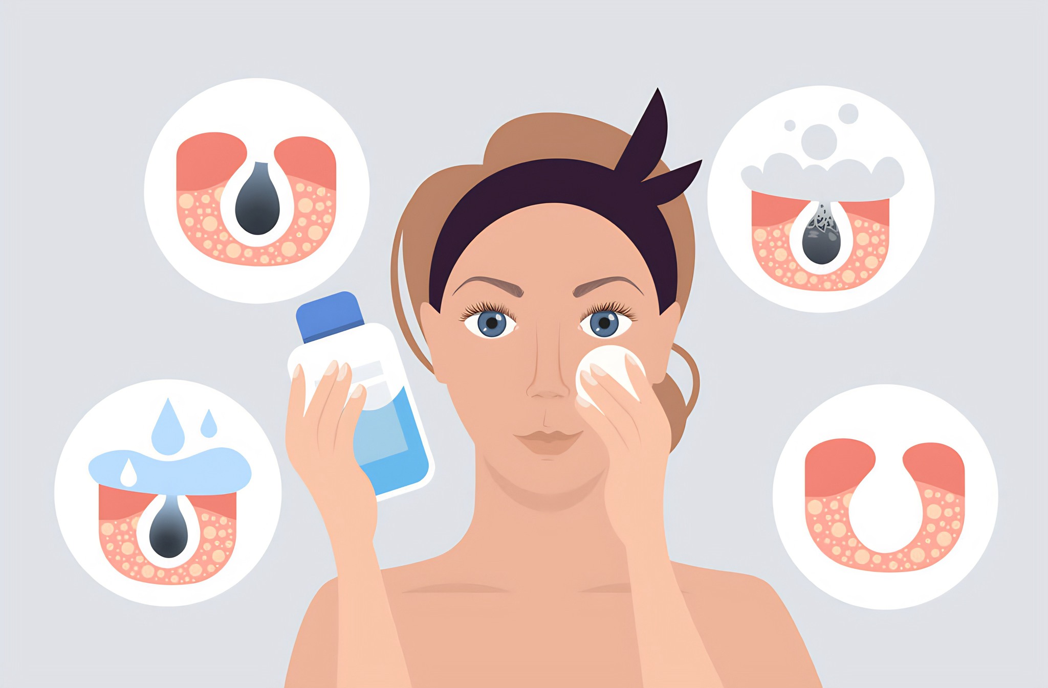 woman using napkin cleaning pore facial cleansing procedure on clogged face skin care treatment