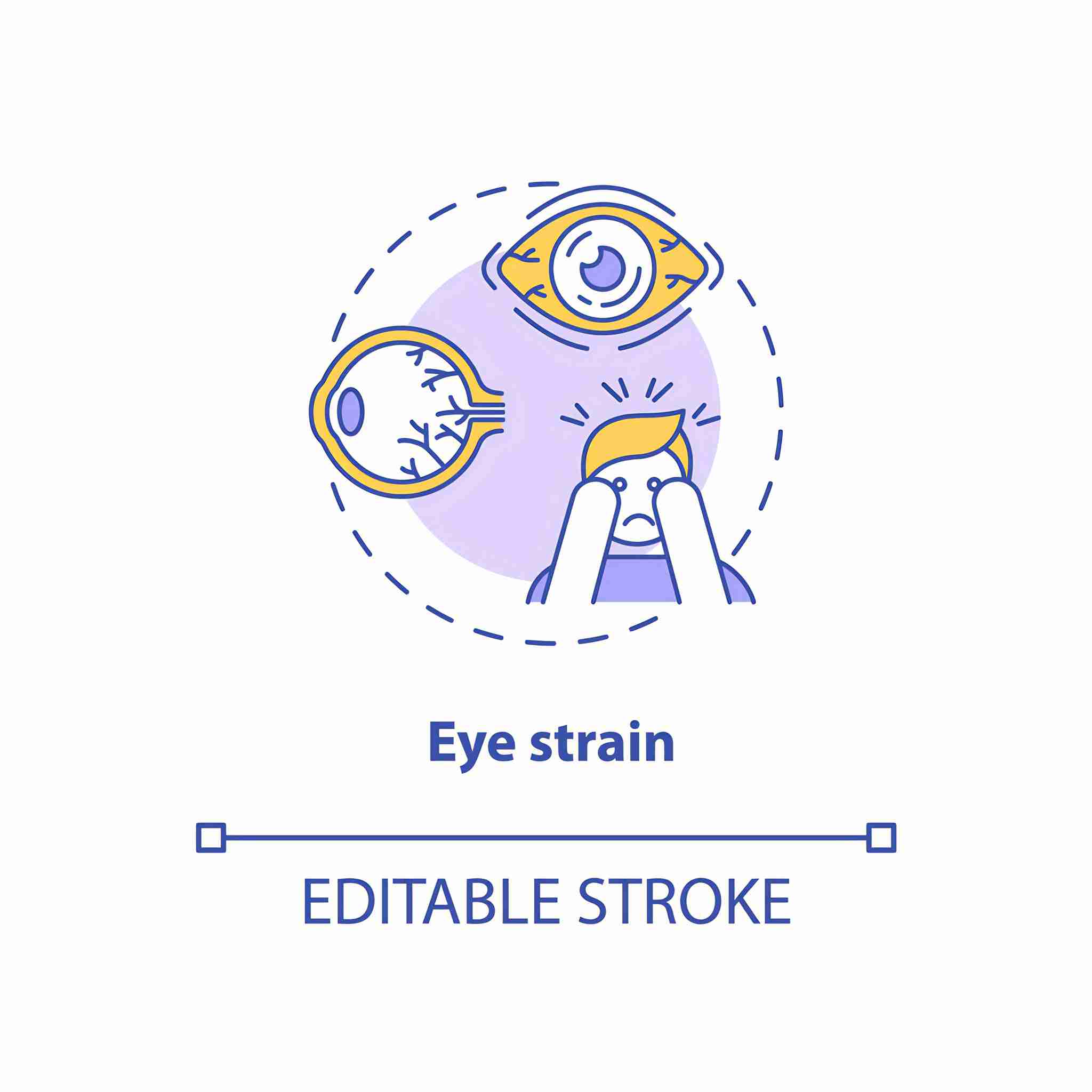 Eye strain concept icon. Screen addiction symptom idea thin line illustration. Itchy, irritated eye.