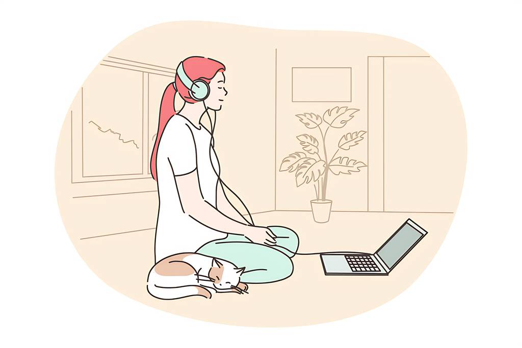 Young woman holding spoon and fork with Let's Eat handwritten lettering, eating dining concept, hand-drawn style vector illustration
