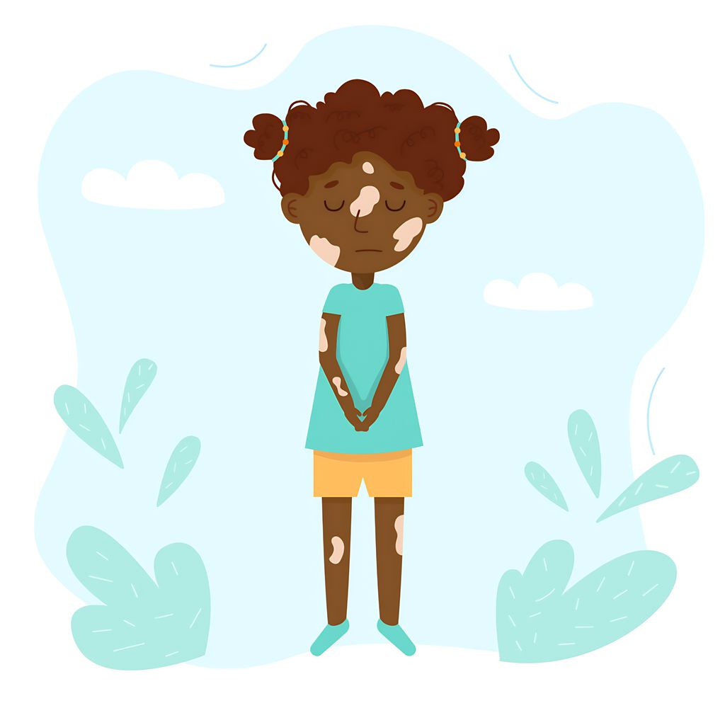 Girl with vitiligo cosmetology skin disease. Vector illustration