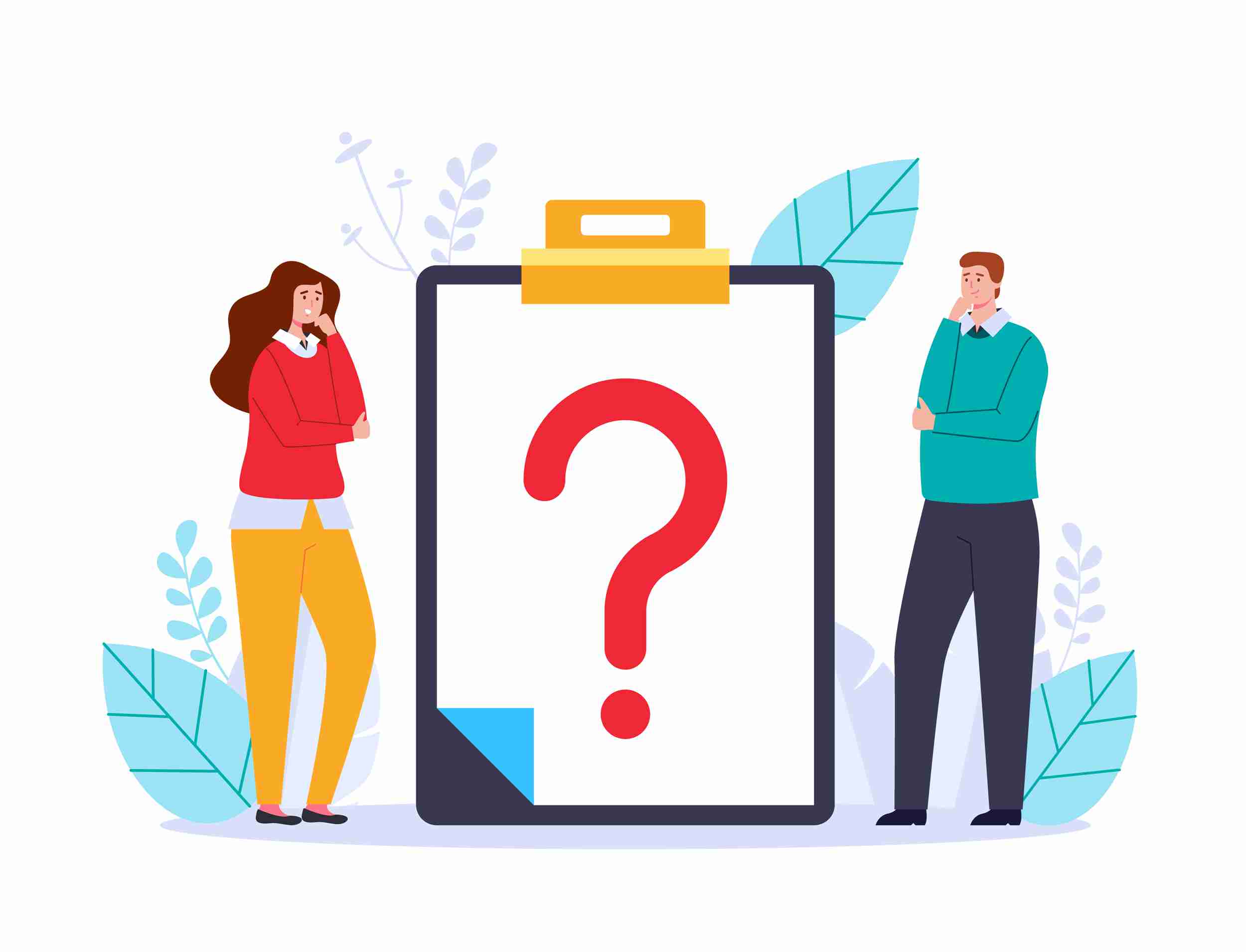 Business office workers character thinkig asking questions and searching anwers vector web adstract