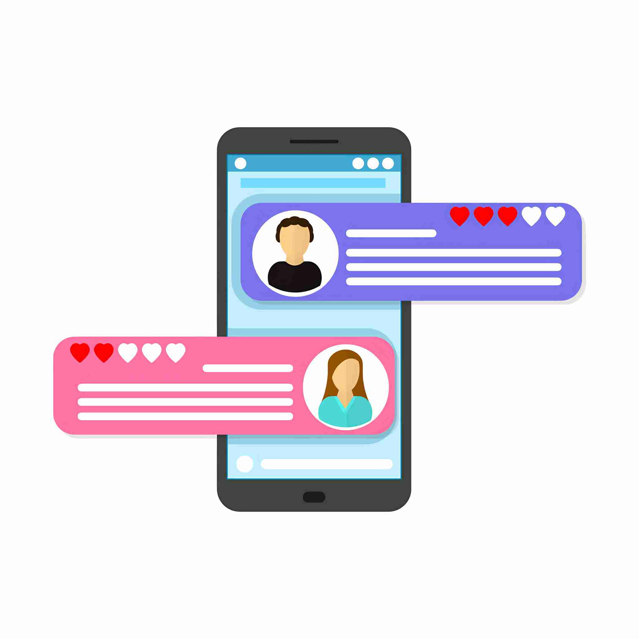 Cartoon Customer Review Page Concept on a Mobile Phone. Vector