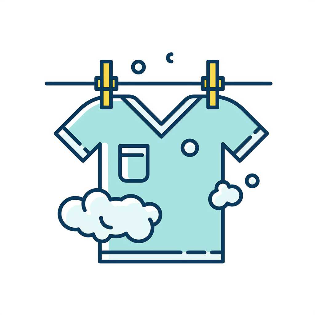 Outdoor drying blue and yellow RGB color icon. Laundry, clothesline, outside clothes drying. T-shirt hanging on rope, clean summer clothing, washed garment. Isolated vector illustration