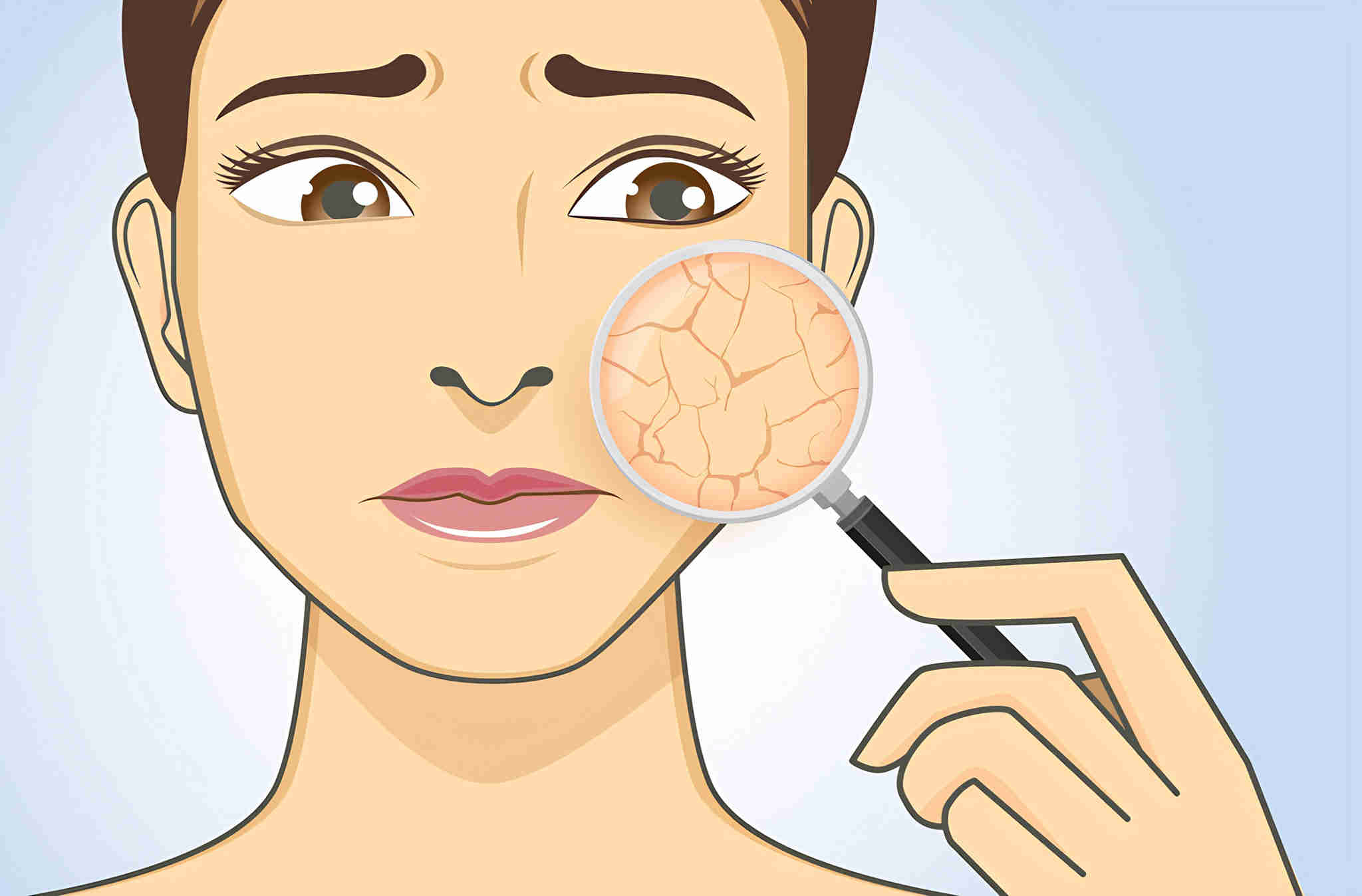 Flat vector illustration of an unhappy suffering man scratching the skin on hand. Various skin problems, such as allergies, psoriasis, itching, atopic dermatitis, eczema, dryness, redness.