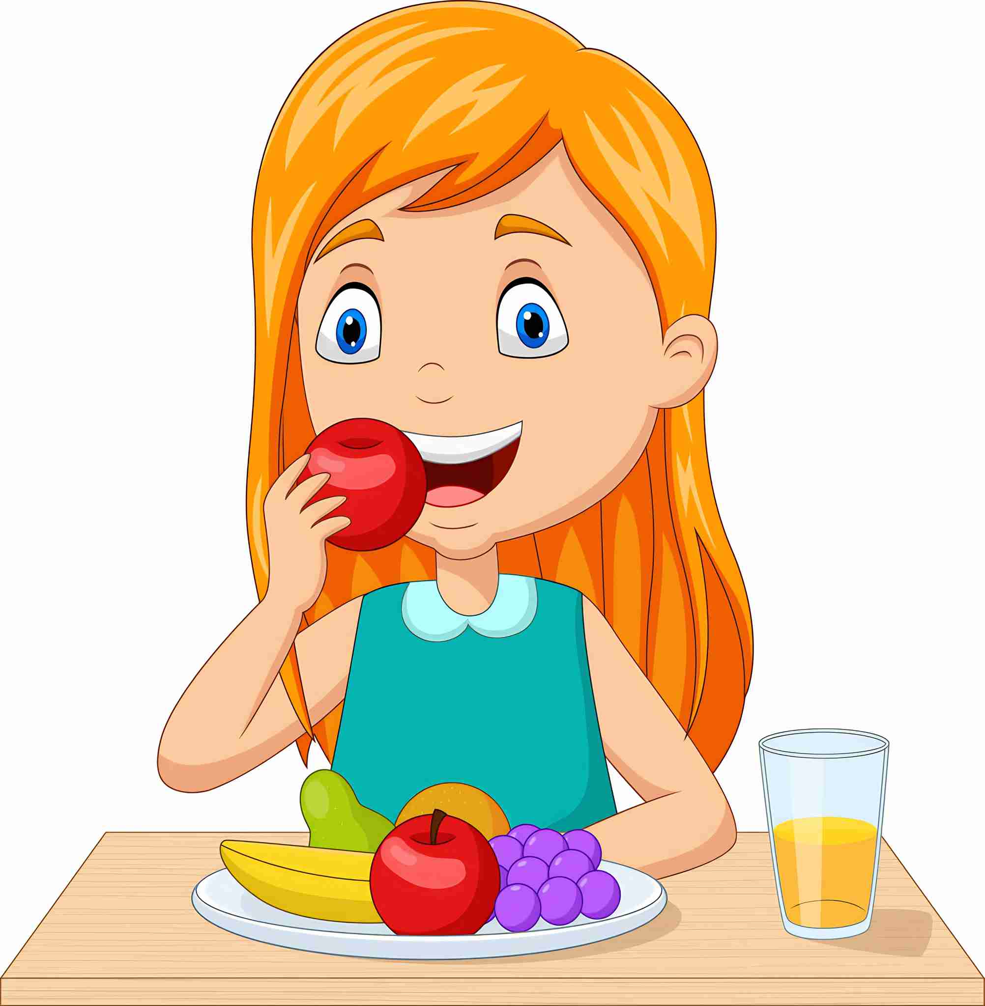 Young woman holding spoon and fork with Let's Eat handwritten lettering, eating dining concept, hand-drawn style vector illustration