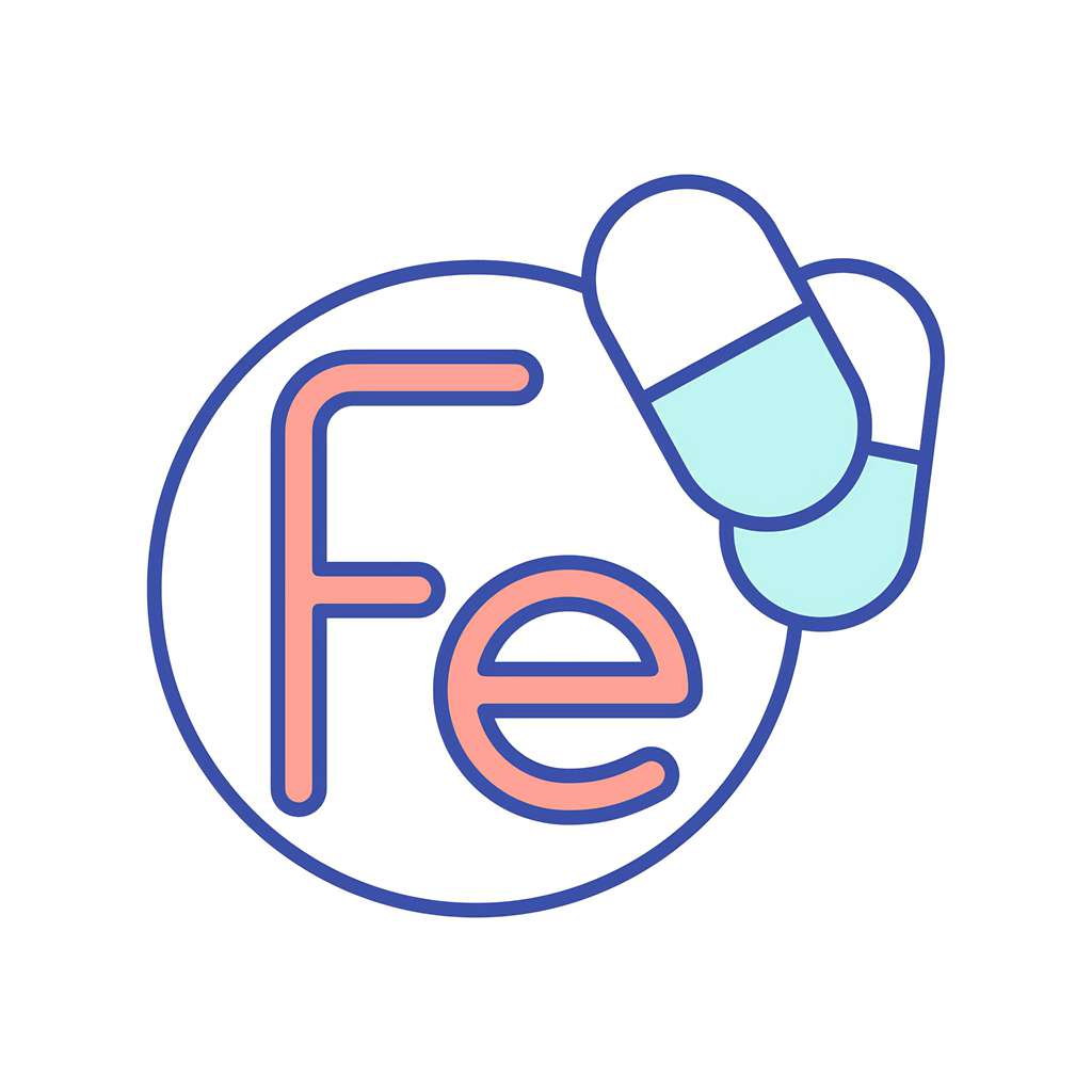 Fe vitamin RGB color icon. Multivitamin complex. Mineral in medicament. Pill, pharmaceutical treatment. Diet supplement for healthy eating. Dietary and nutritionology. Isolated vector illustration