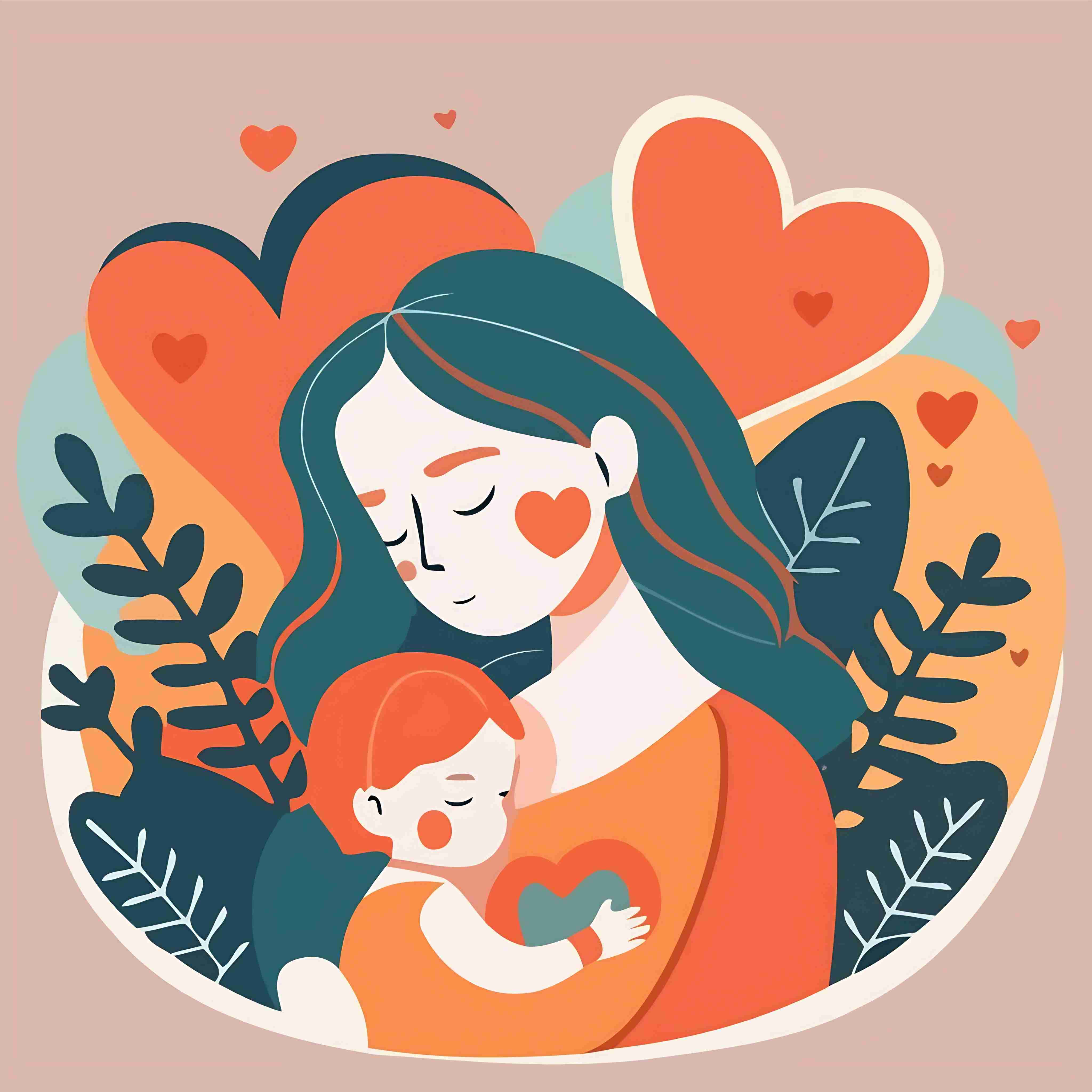 adult woman holding her baby son with love to illustrate mother day or motherhood minimalist vector illustration