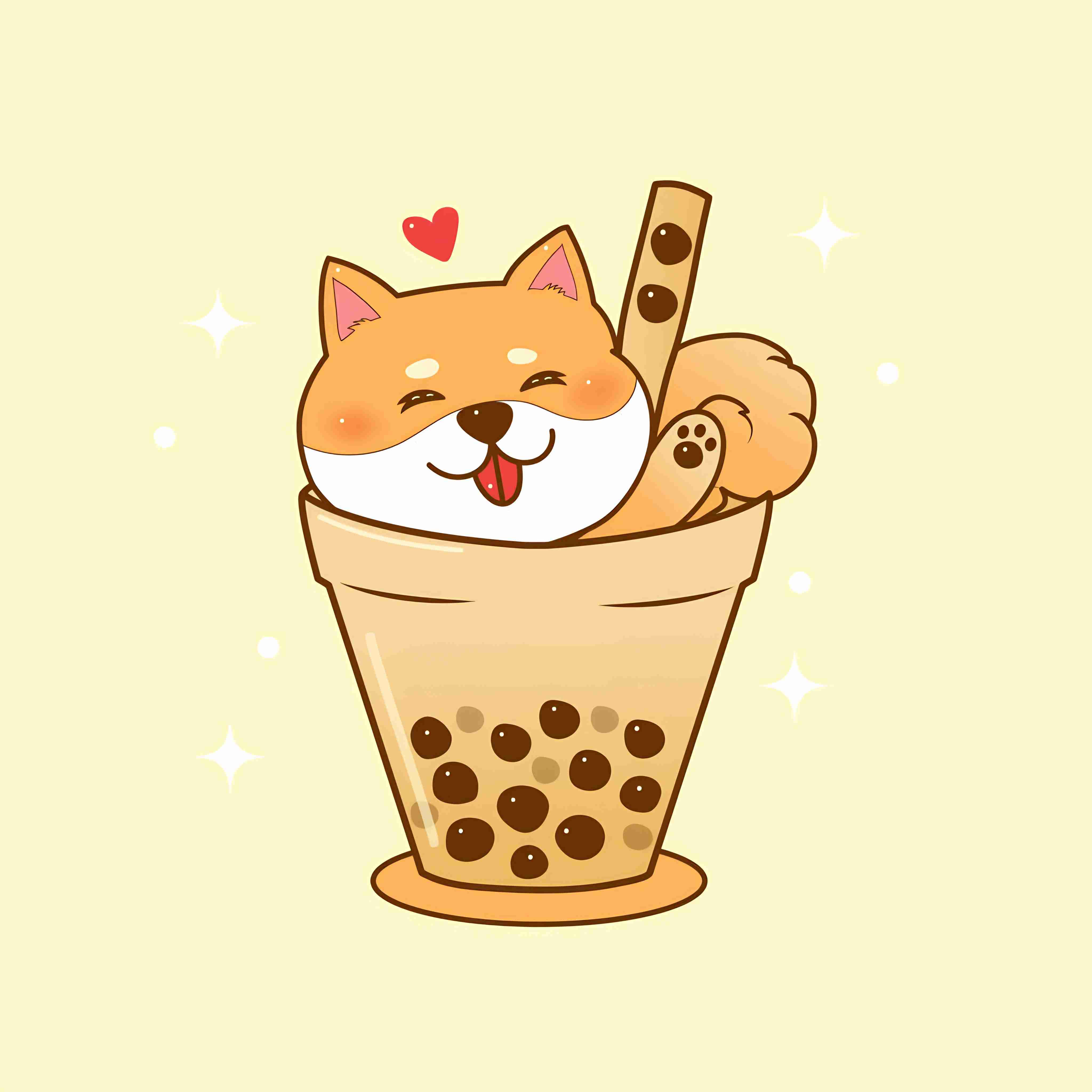 Cute cartoon fox in bubble milk tea cup , vector illustration
