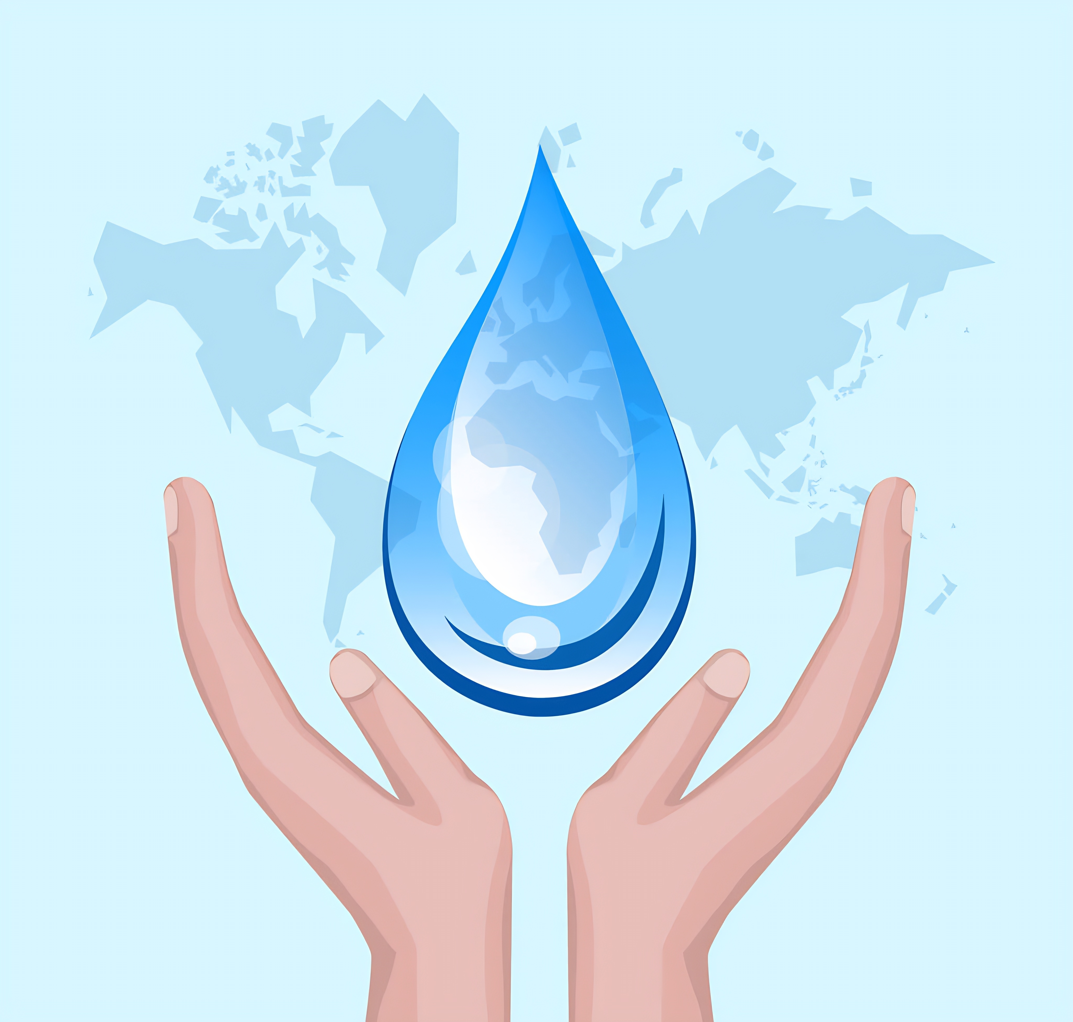 world water day with hand holding drop on world map and blue background