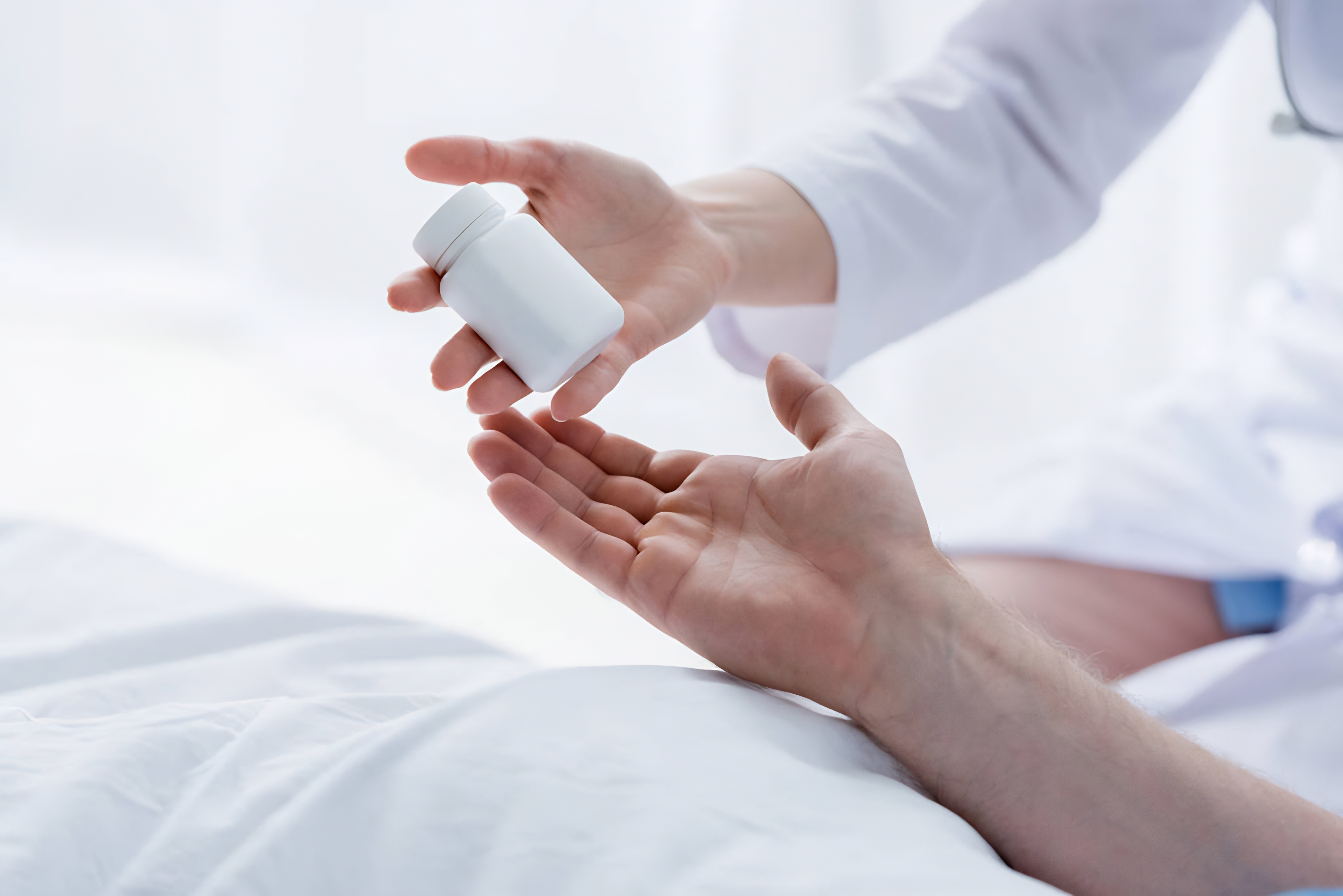 穿着温暖袜子的人靠近桌子,在室内有不同的补救措施,特写。流感病毒