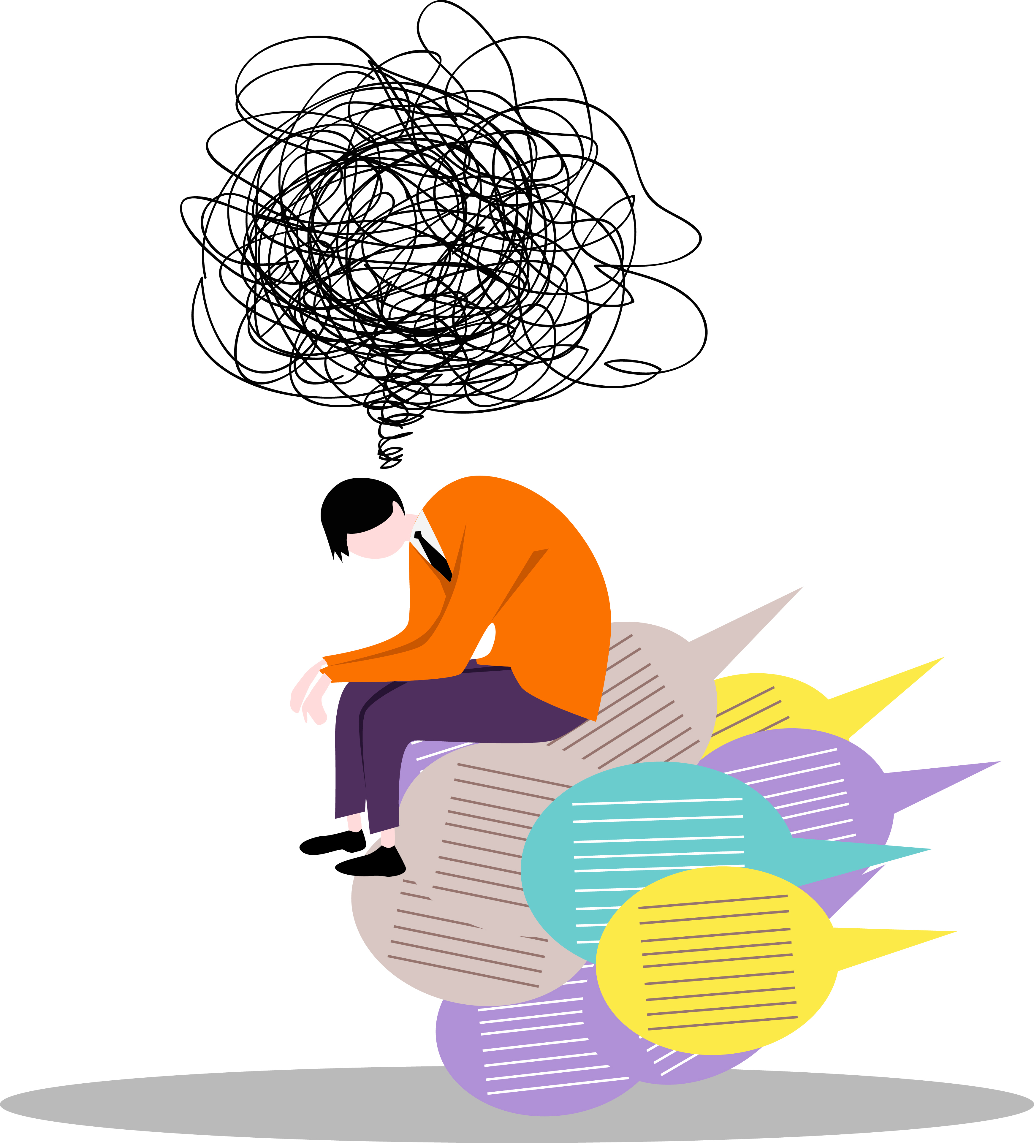 Health mental woman suffering from bipolar disorder, Girl surrounded by symptoms of bipolar disorder