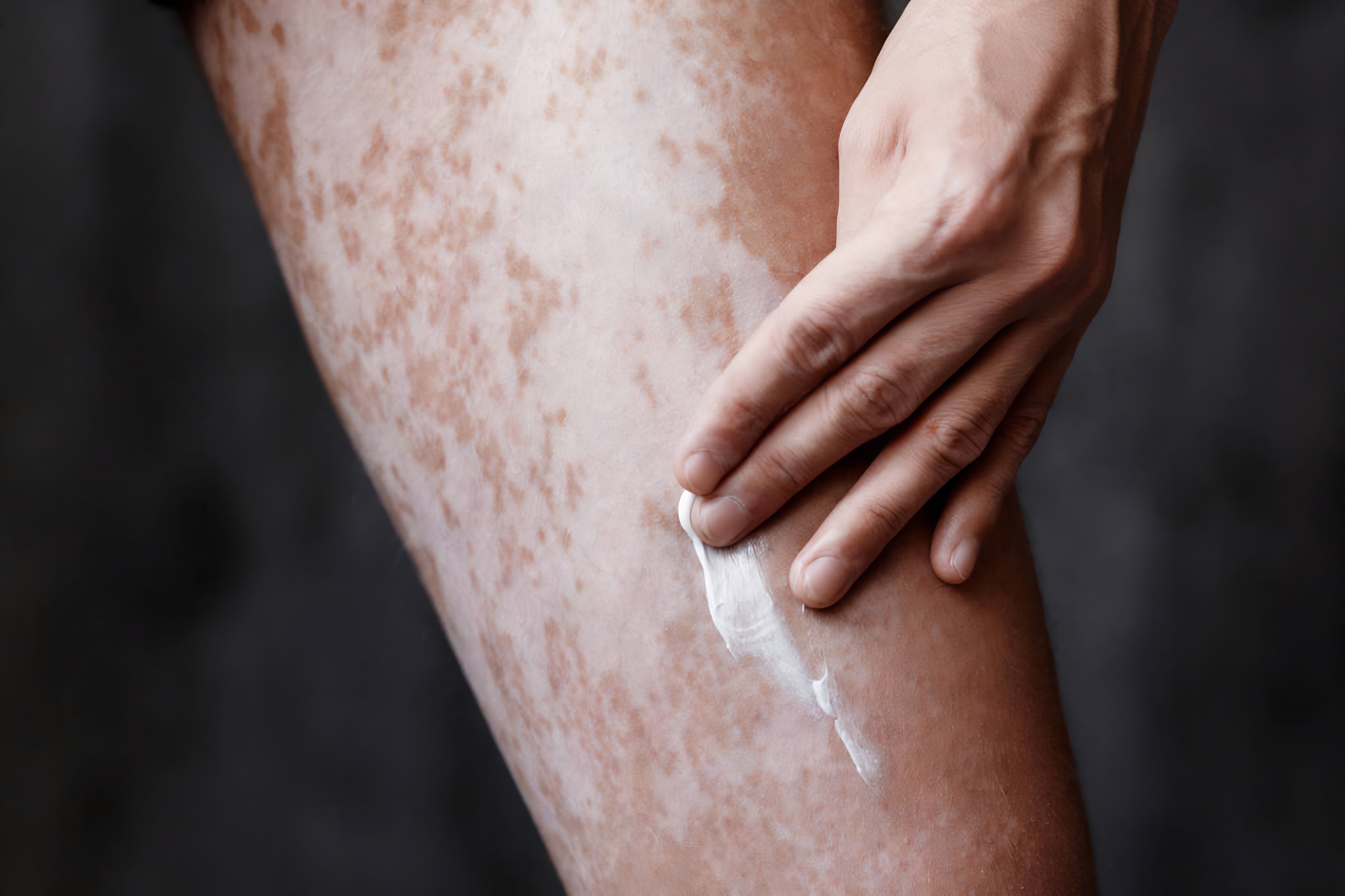 Man with a walking stick at the doctors appointment. Vector concept illustration of a standing smiling man and female doctor with a perscription consulting him. Interior of a consulting room