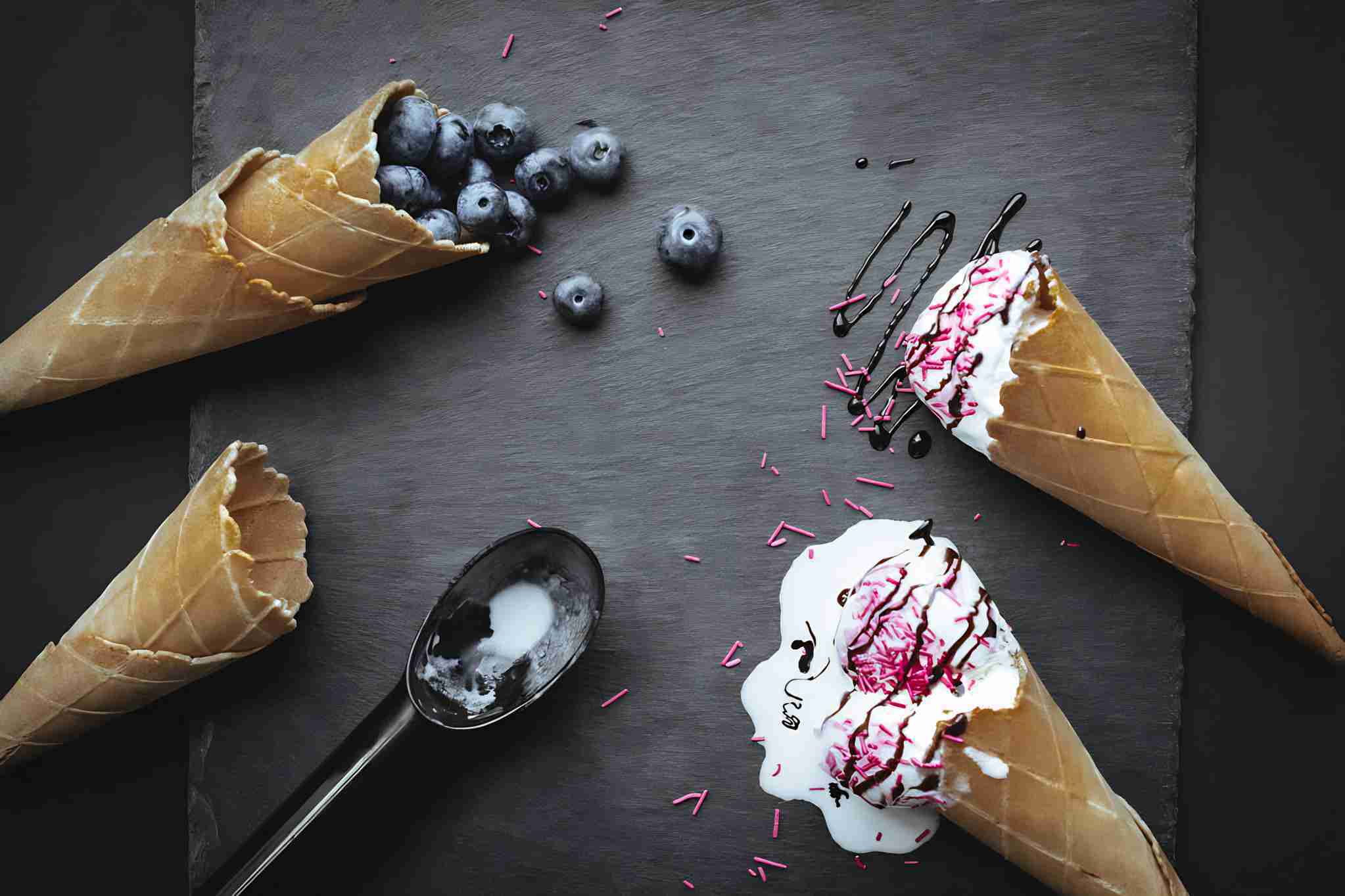 melting ice cream and blueberries
