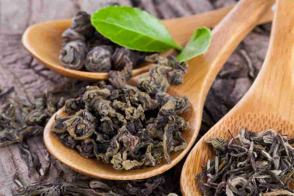 木桌上散落的茶叶