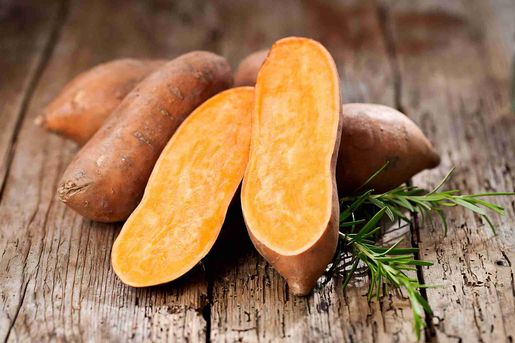 木制背景上的红薯