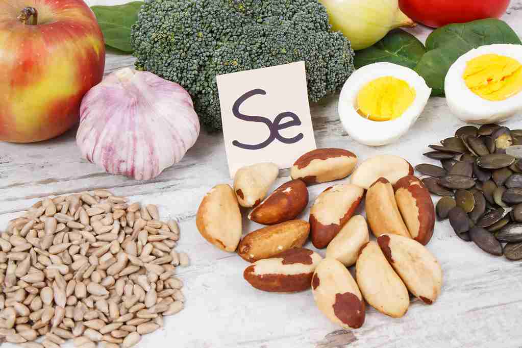 Products and ingredients containing selenium, minerals and dietary fiber, healthy nutrition concept