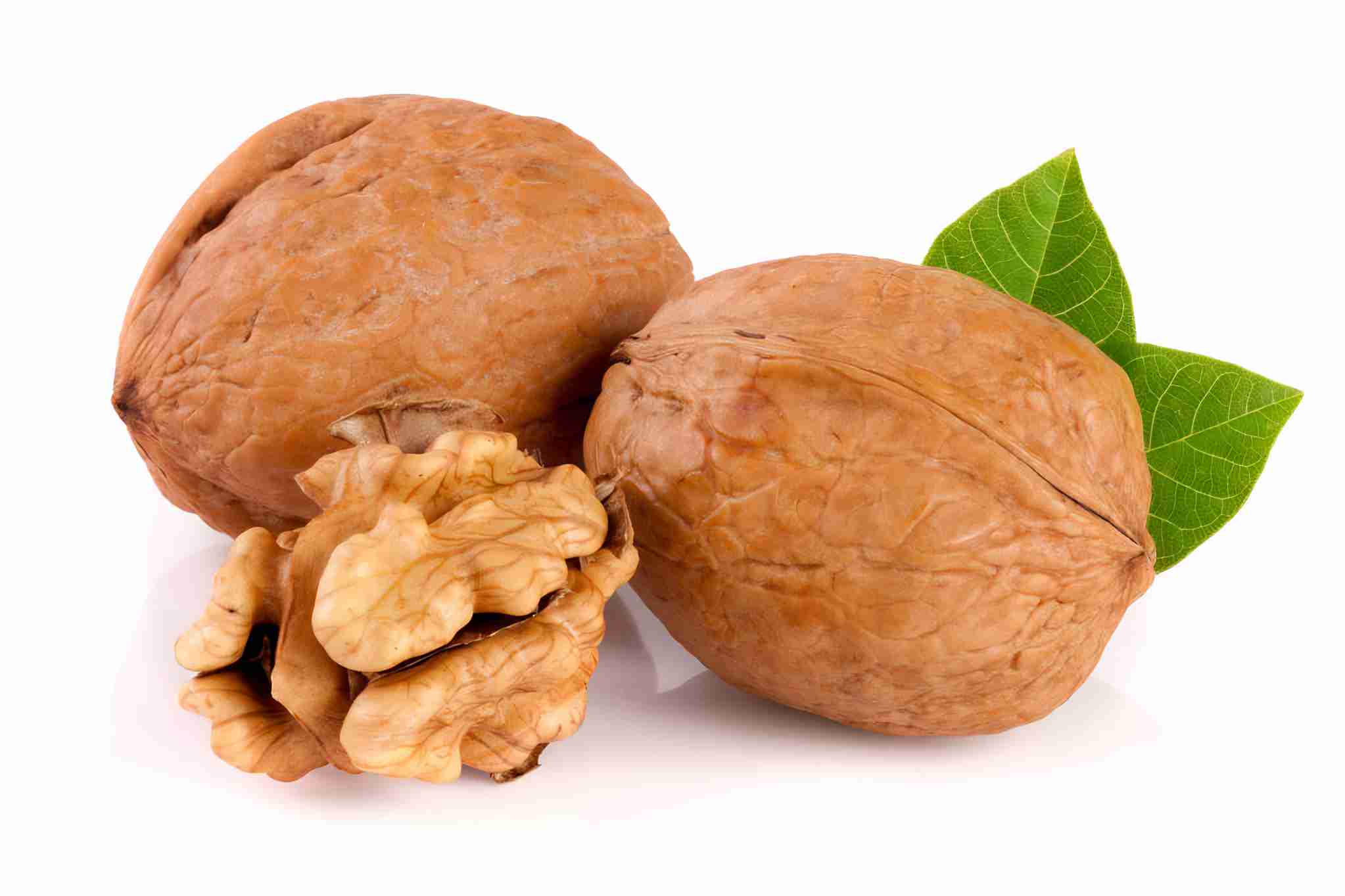 Walnuts with leaf isolated on white background