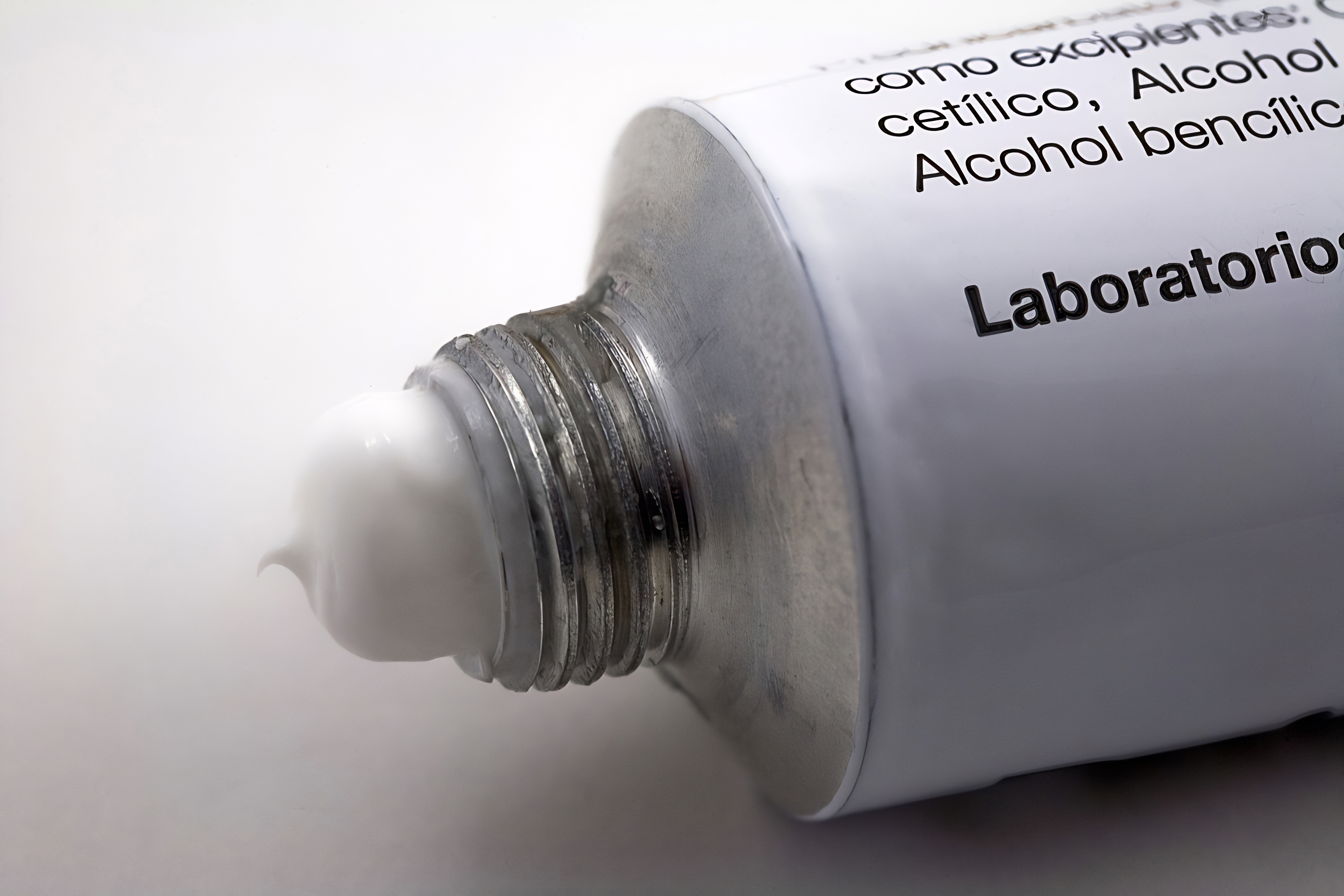 Close up of male hands with vitiligo pigments isolated on blue studio background