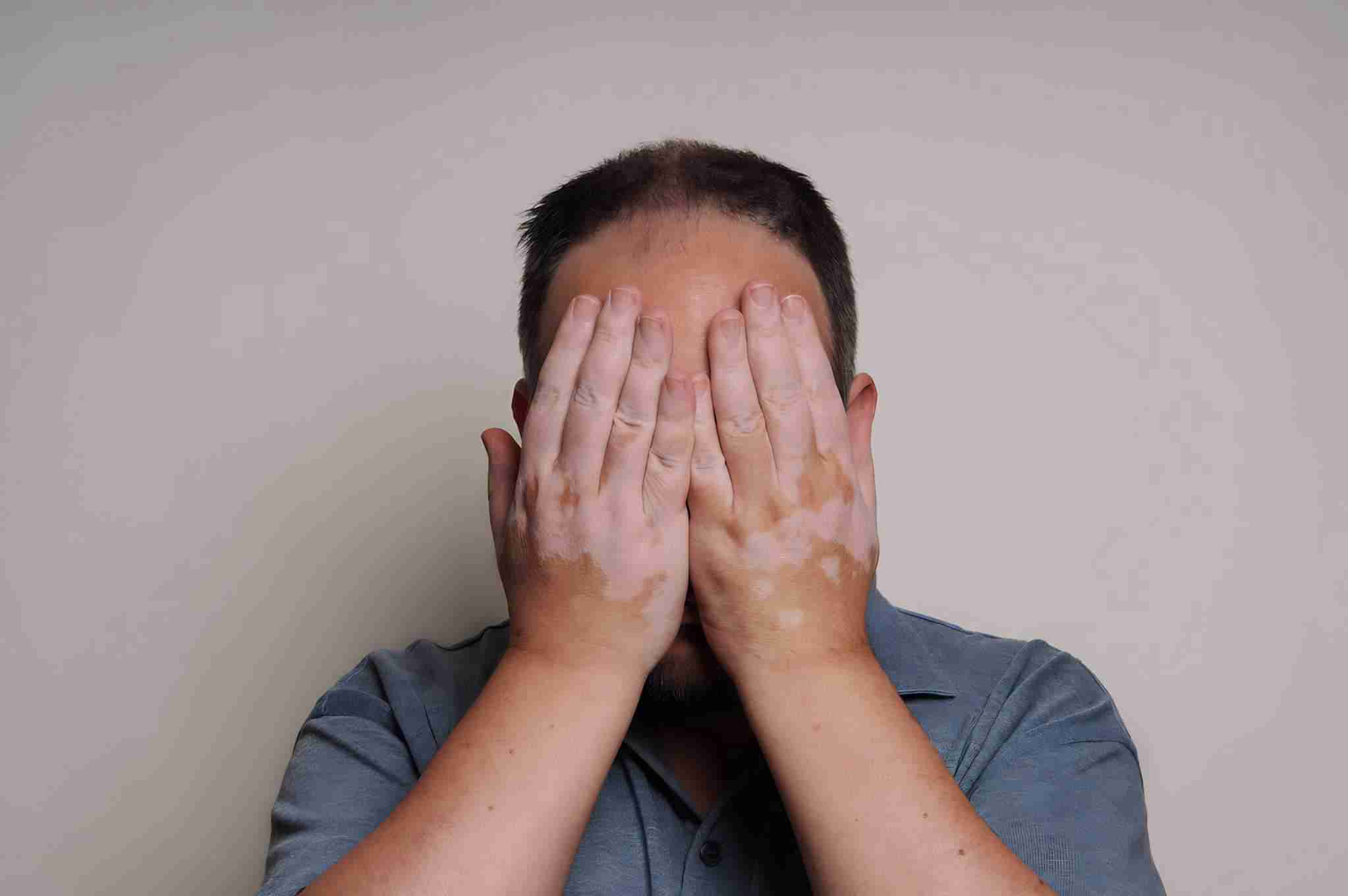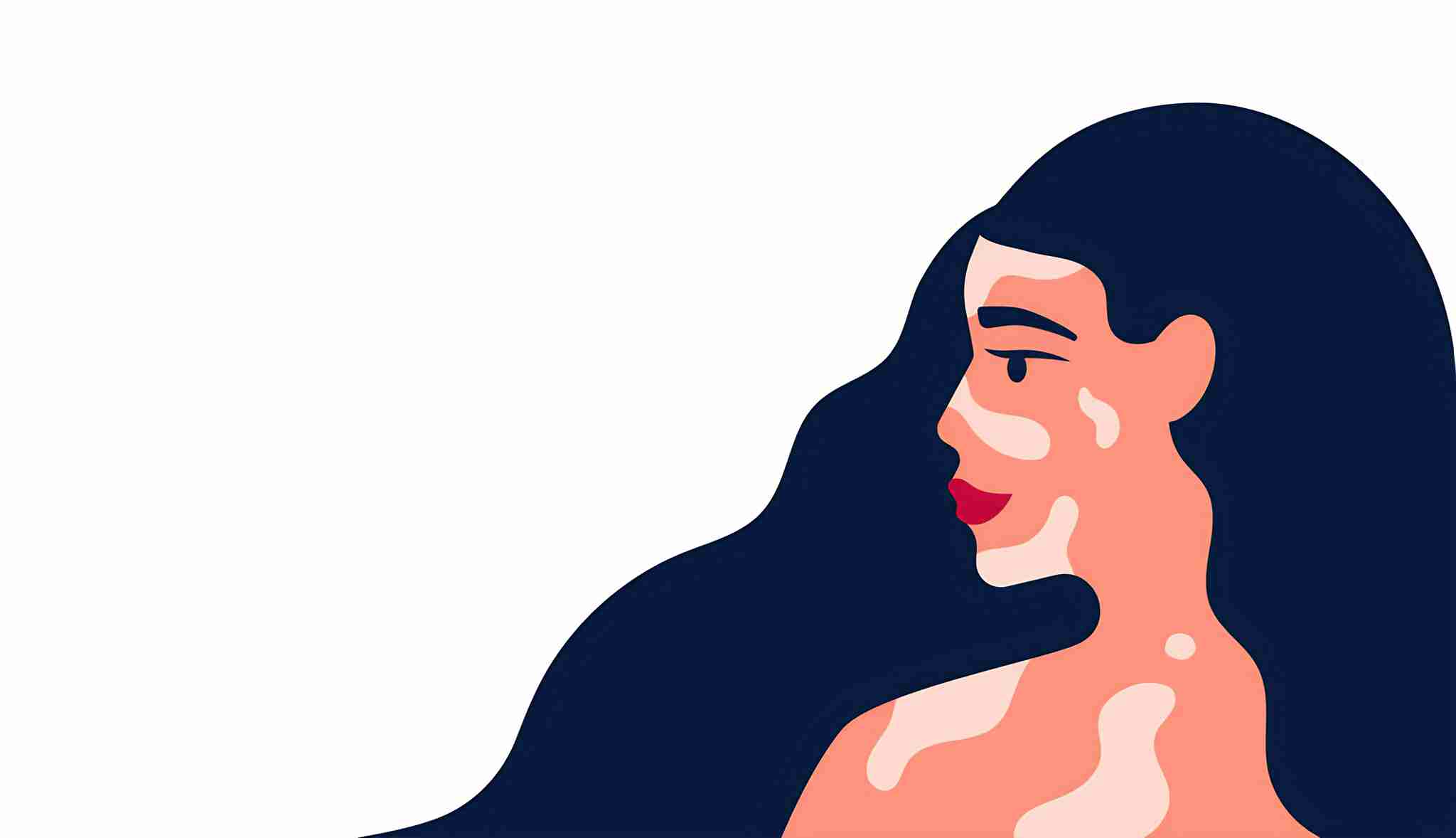 Beautiful female with vitiligo pigment skin and has a lot of blue hair vector illustration