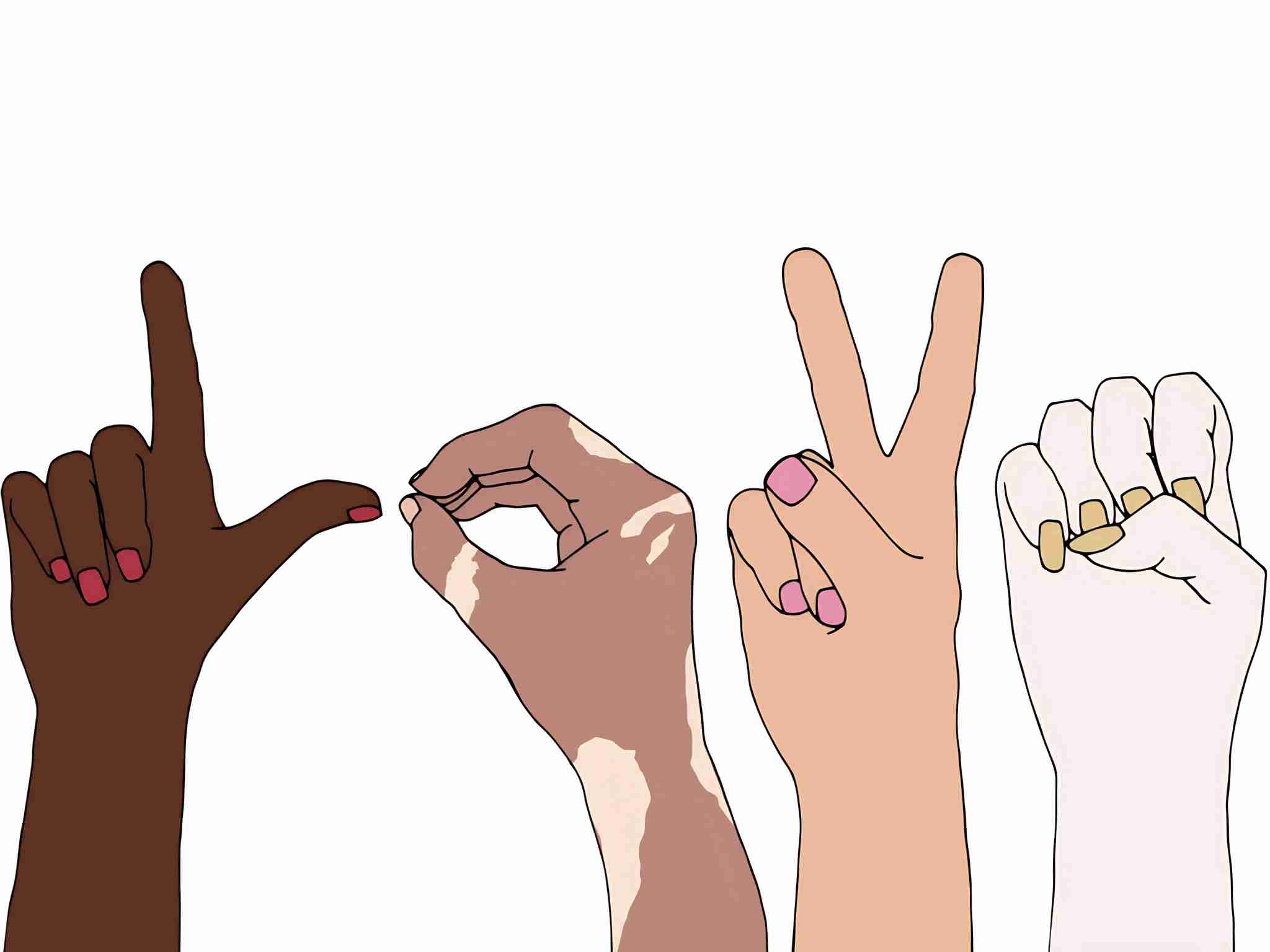 Illustration of different skin people raising their hands for equality. Anti-racism concept