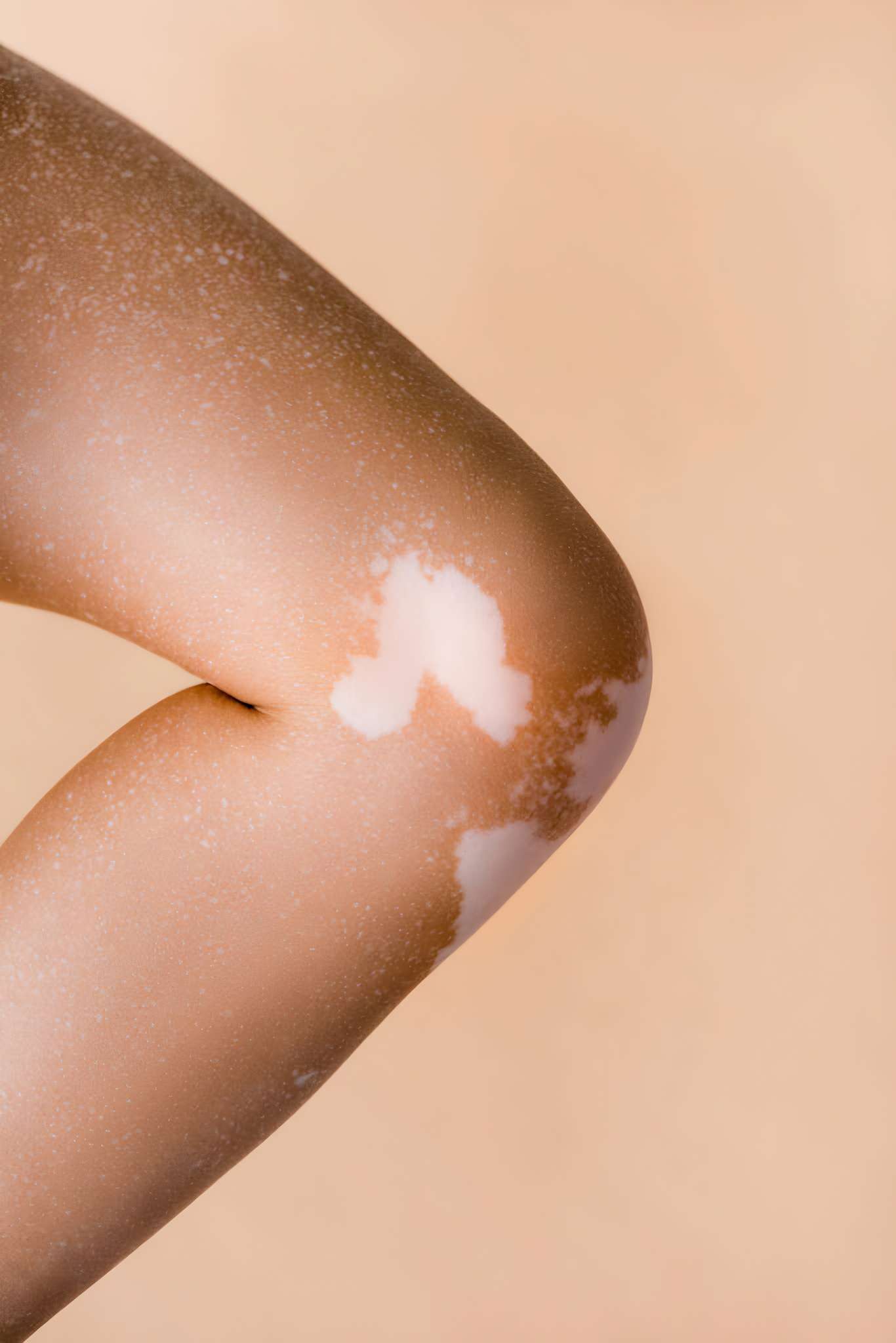 cropped view of female leg with vitiligo isolated on beige