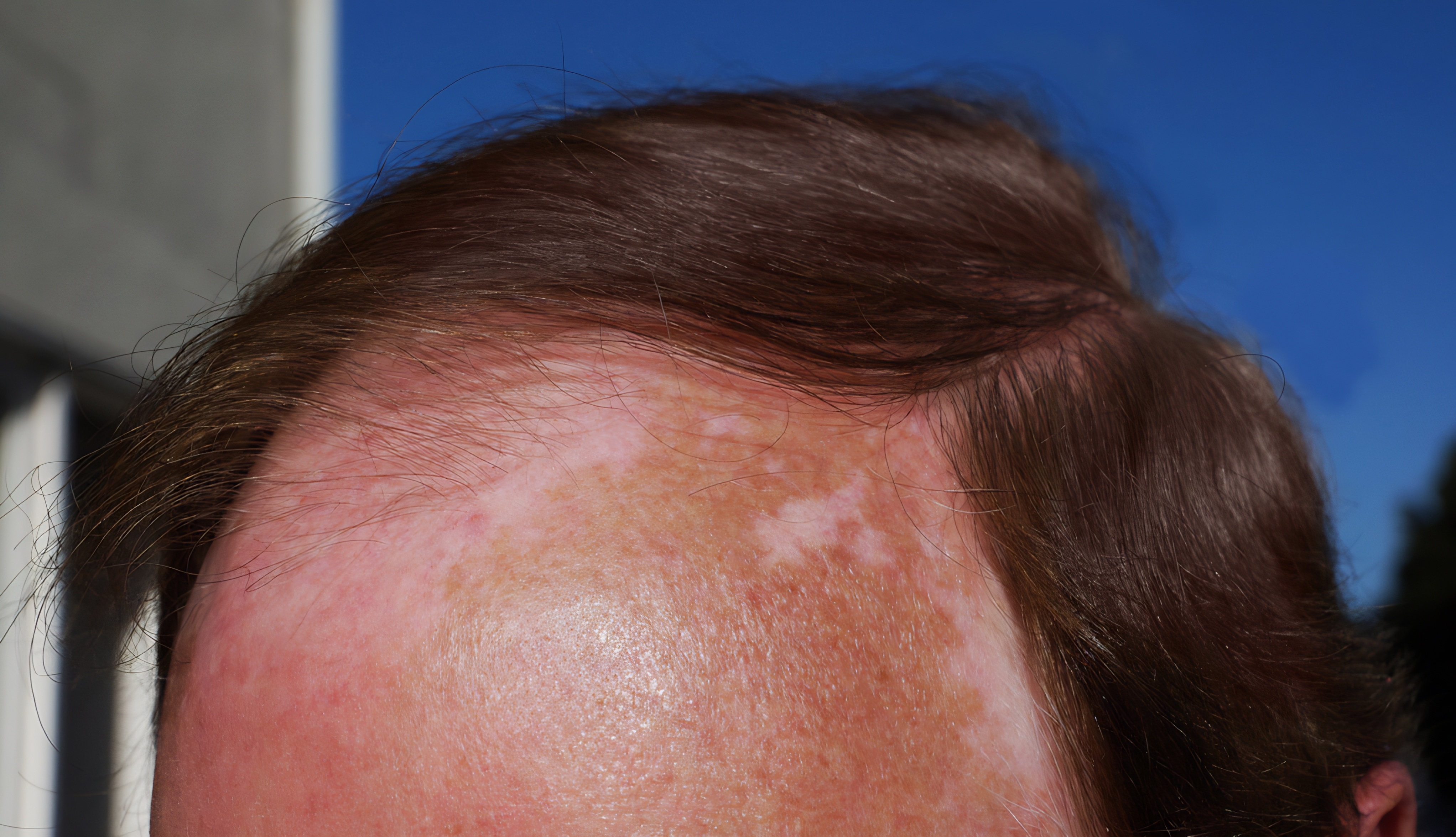 Seamless pattern of female faces with vitiligo. Portraits with different ethnics, skin colors, hairs