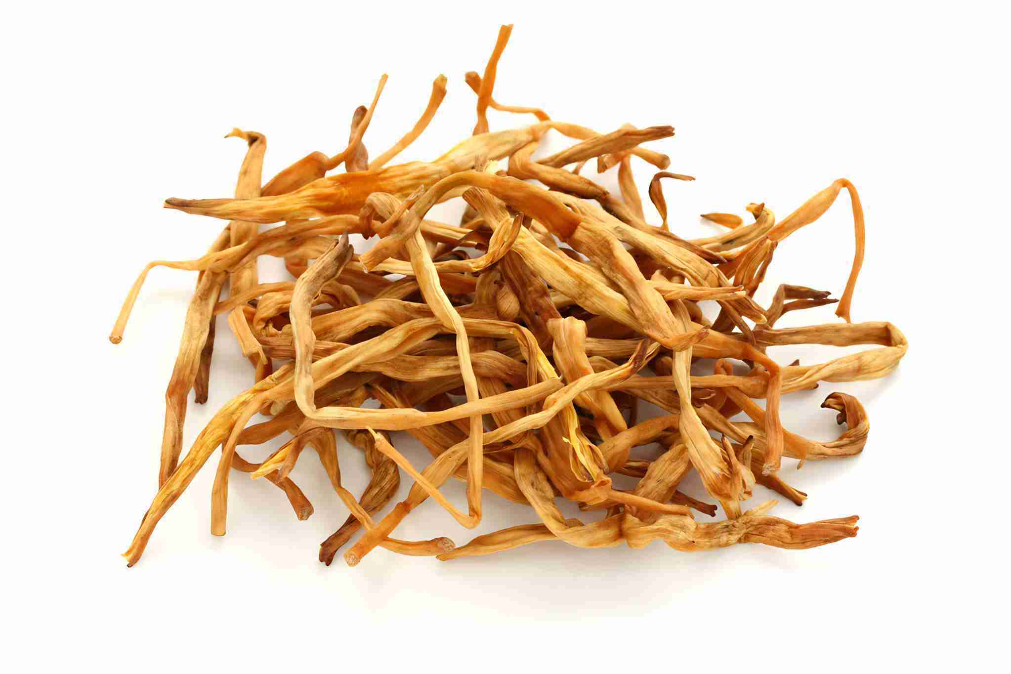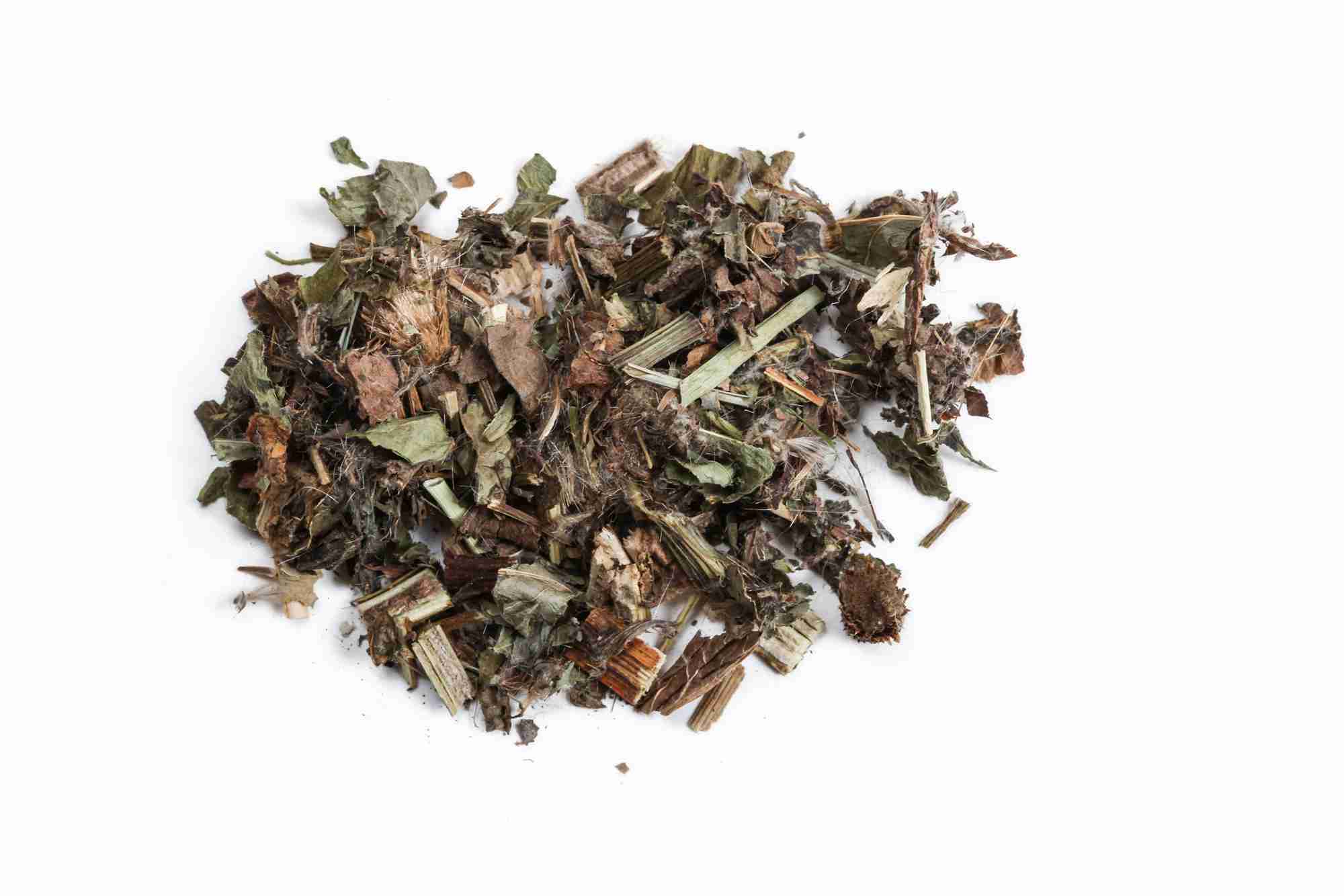 Jiaogulan Miracle grass leaf Chinese herb tea in spoon on white