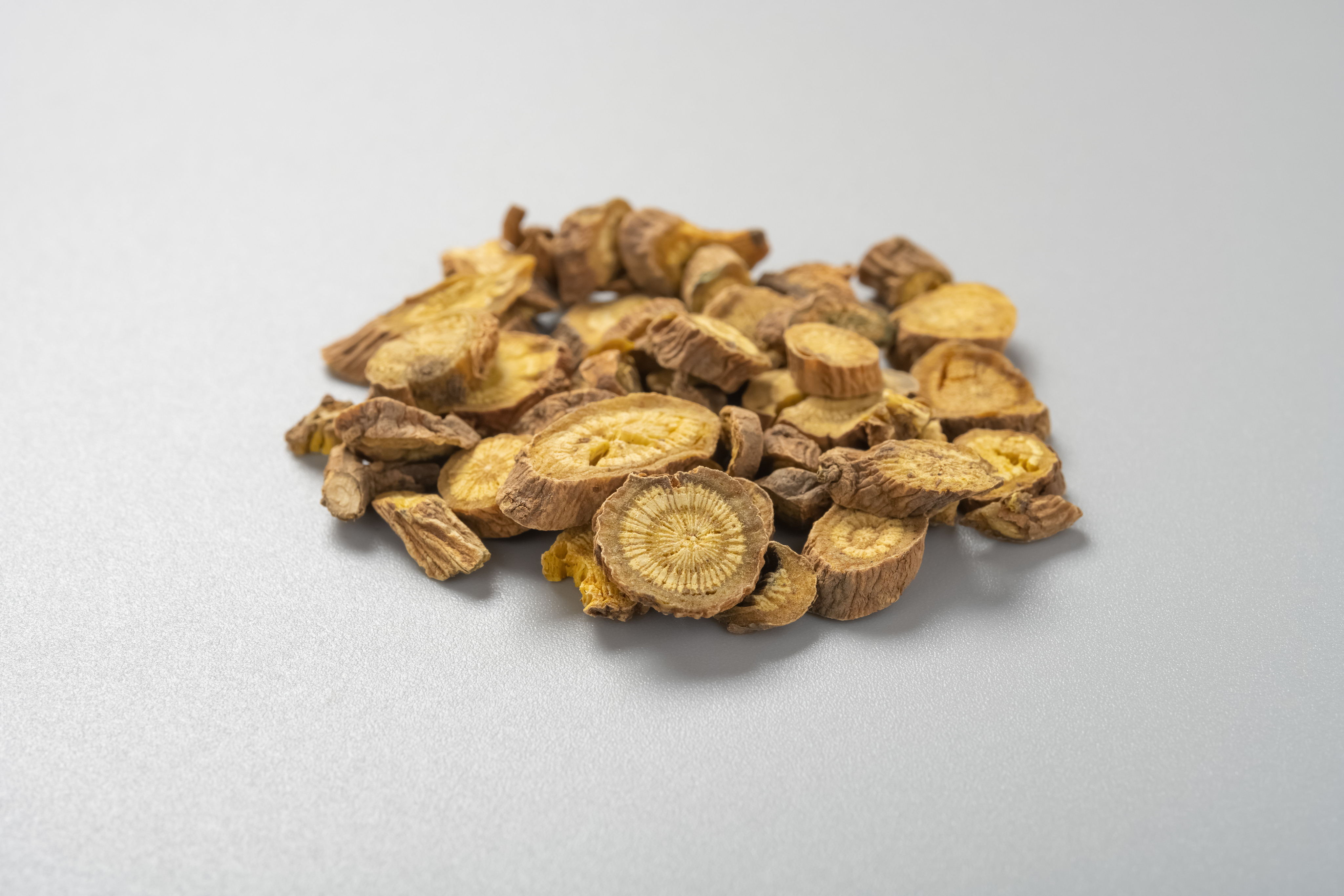 side view herb medicine HuangQin or Baikal Skullcap Root or Scutellariae Radix