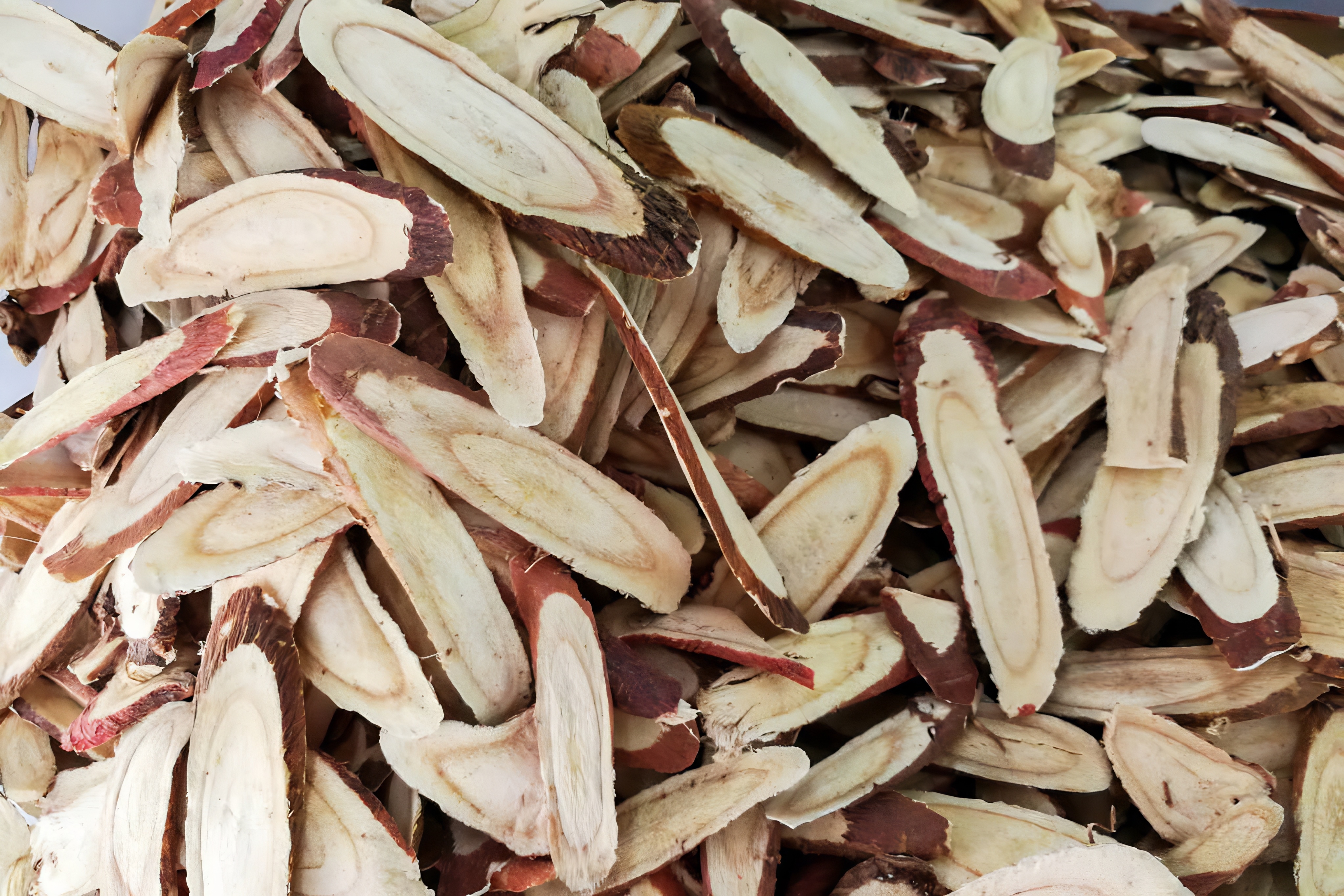 Heap of dried and sliced liquorice root