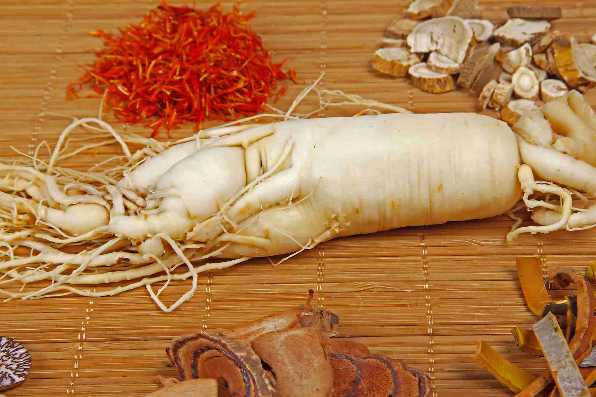 Traditional Chinese medicine (TCM) and ginseng, close-up