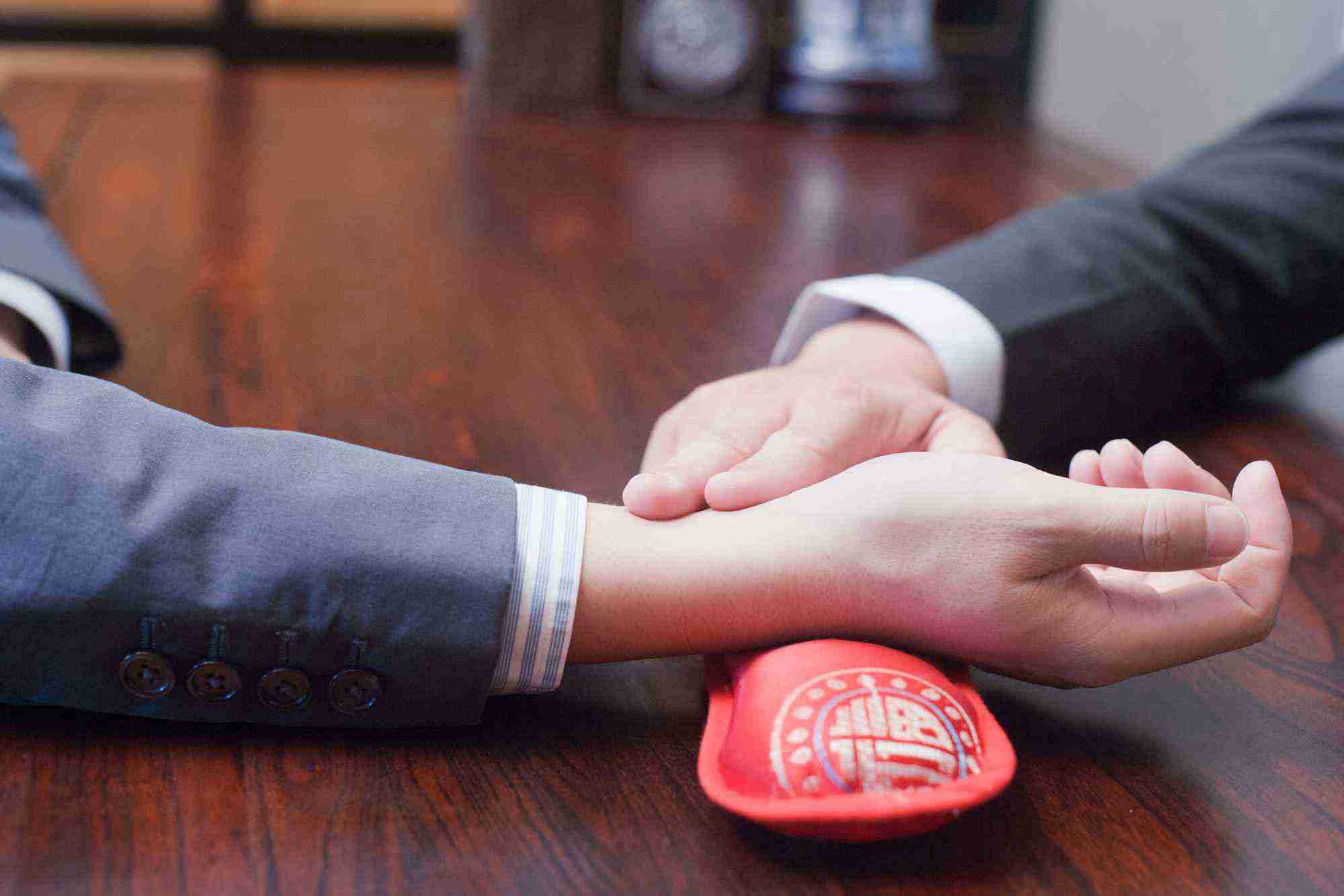 Traditional chinese medicine with herb and spices in brown wooden background and a doctor for advert